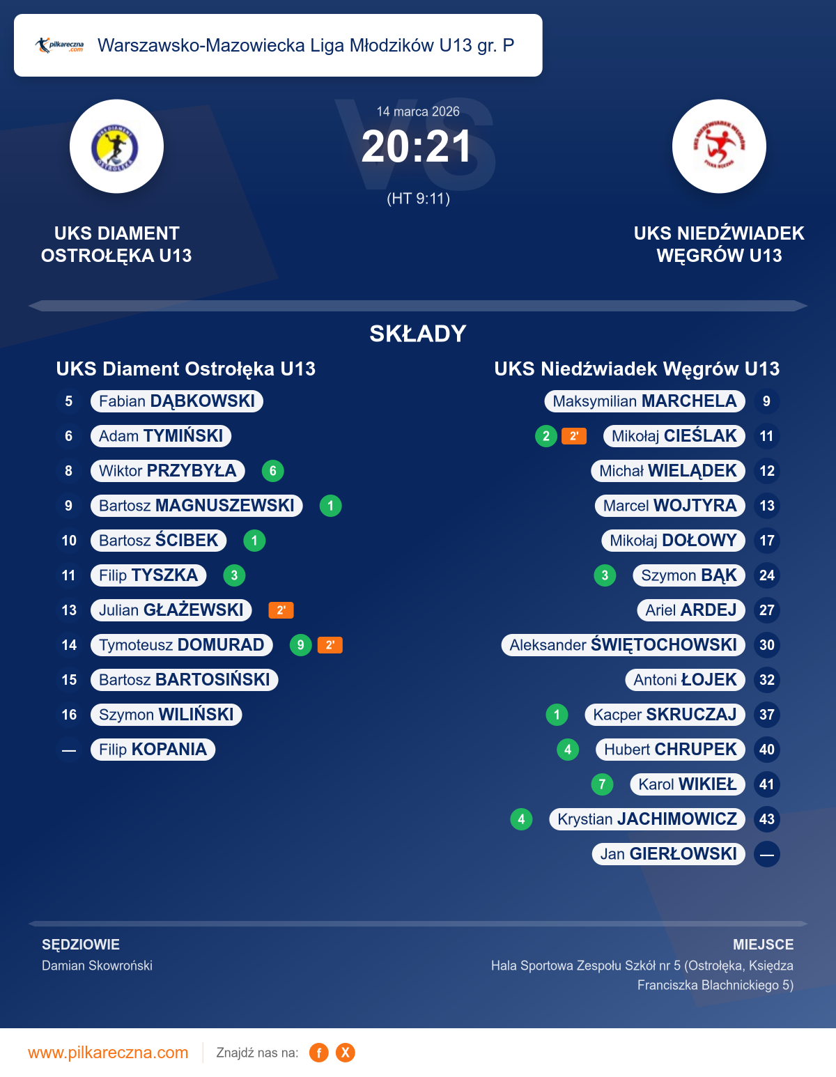 UKS Diament Ostrołęka U13 — UKS Niedźwiadek Węgrów U13