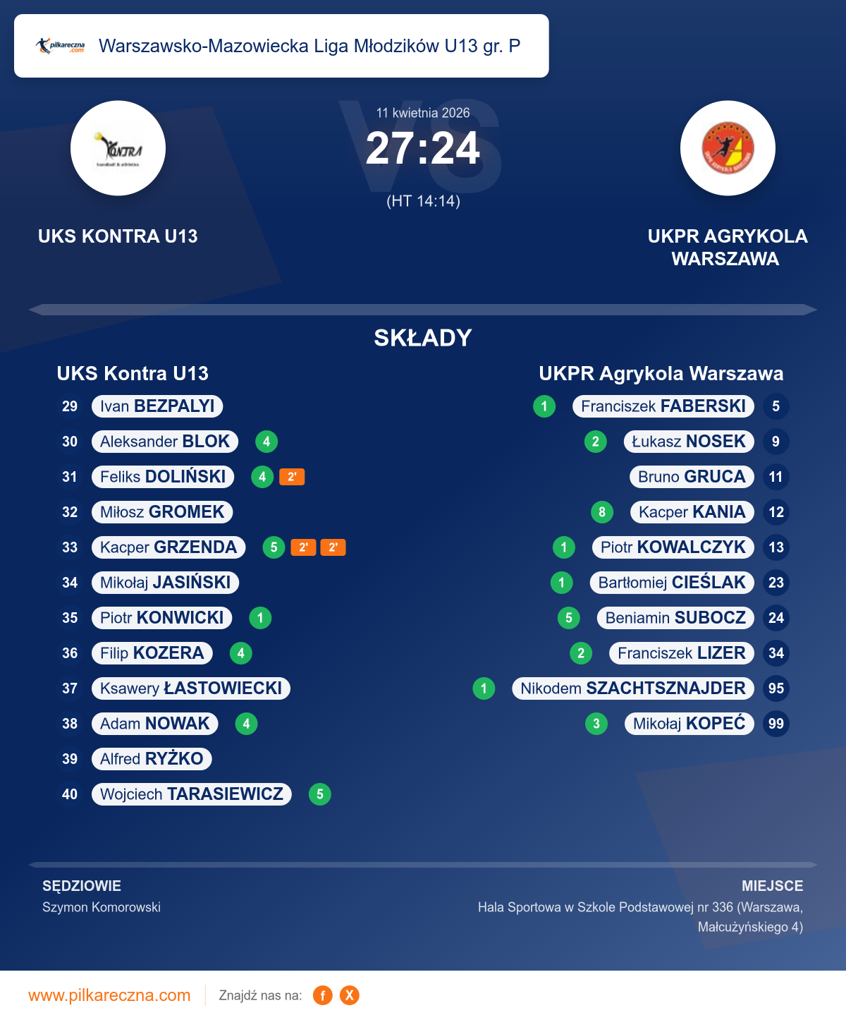 UKS Kontra U13 27–24 UKPR Agrykola Warszawa