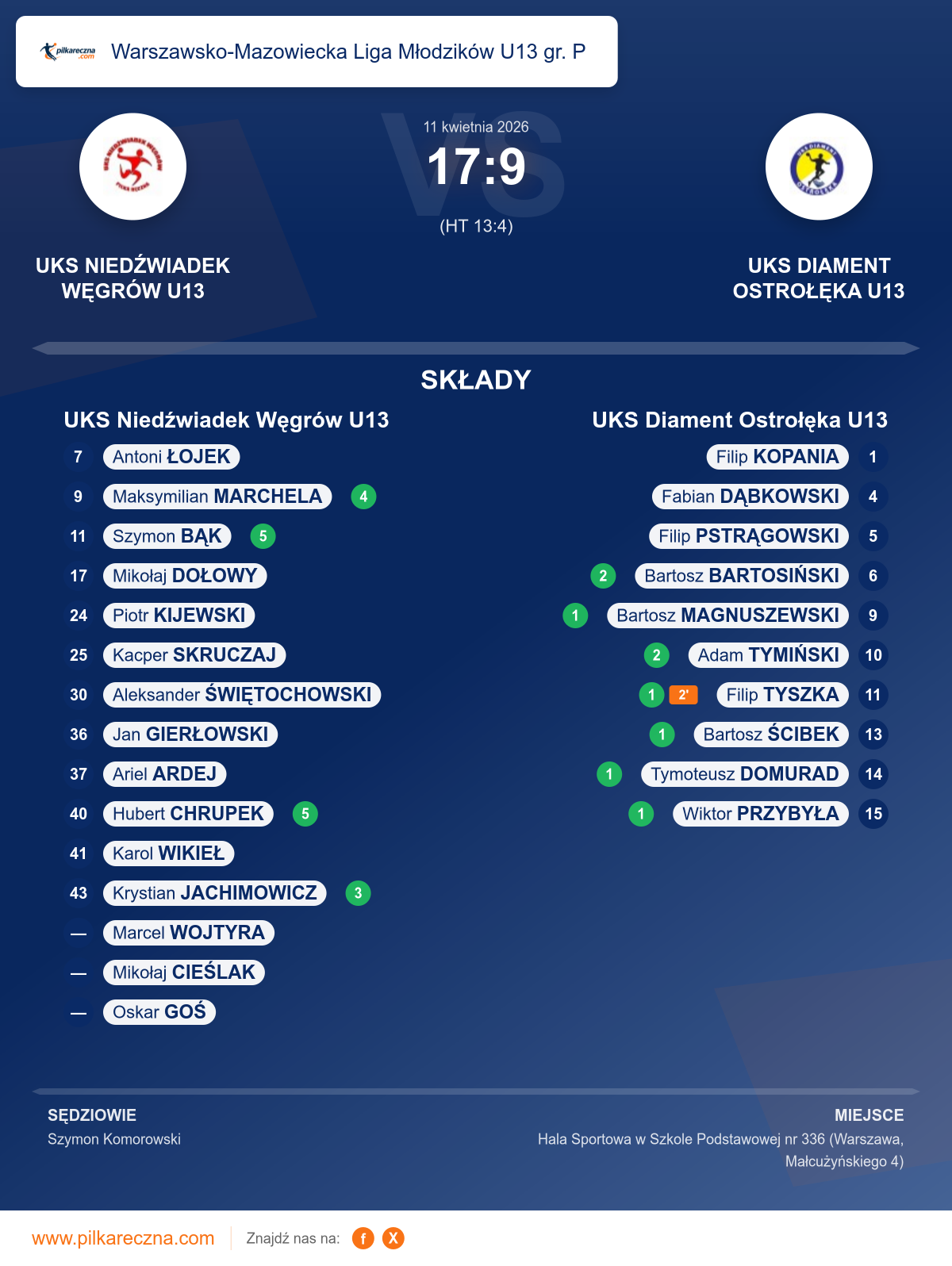UKS Niedźwiadek Węgrów U13 17–9 UKS Diament Ostrołęka U13