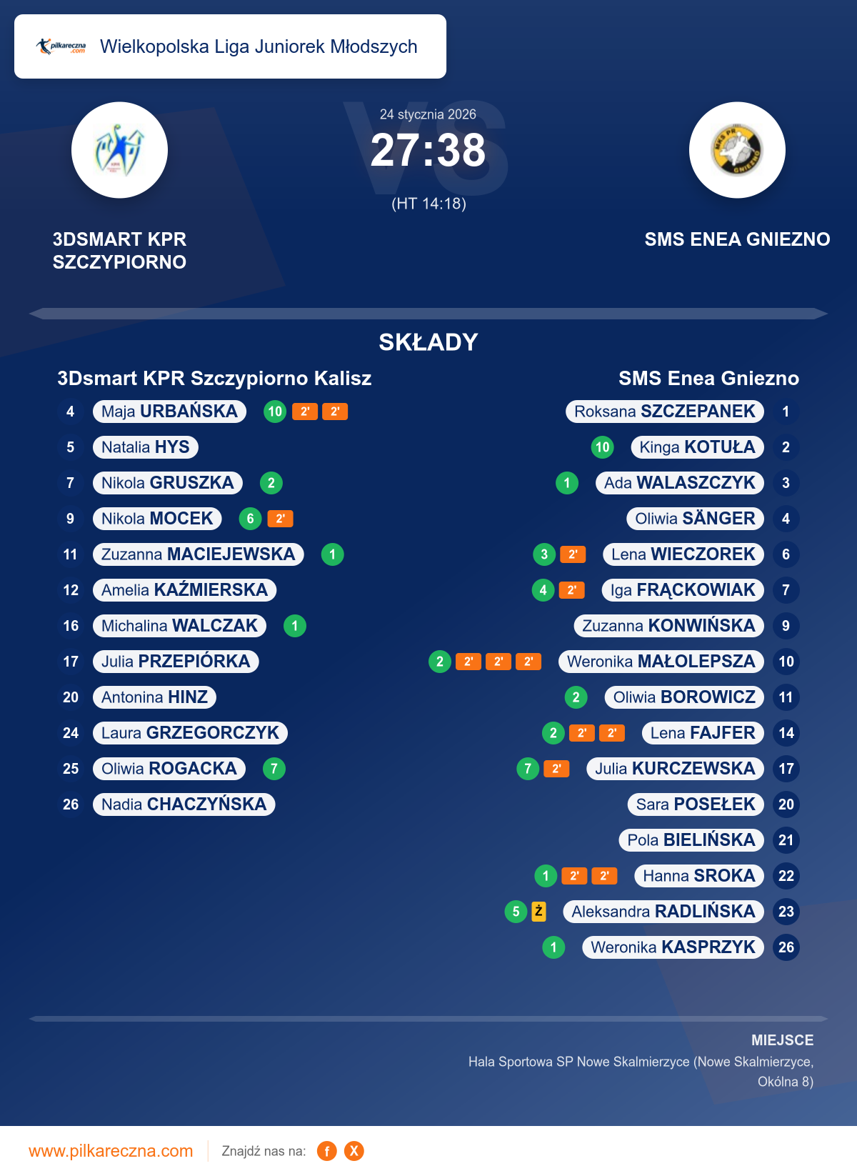 3Dsmart KPR Szczypiorno Kalisz 27–38 SMS Enea Gniezno