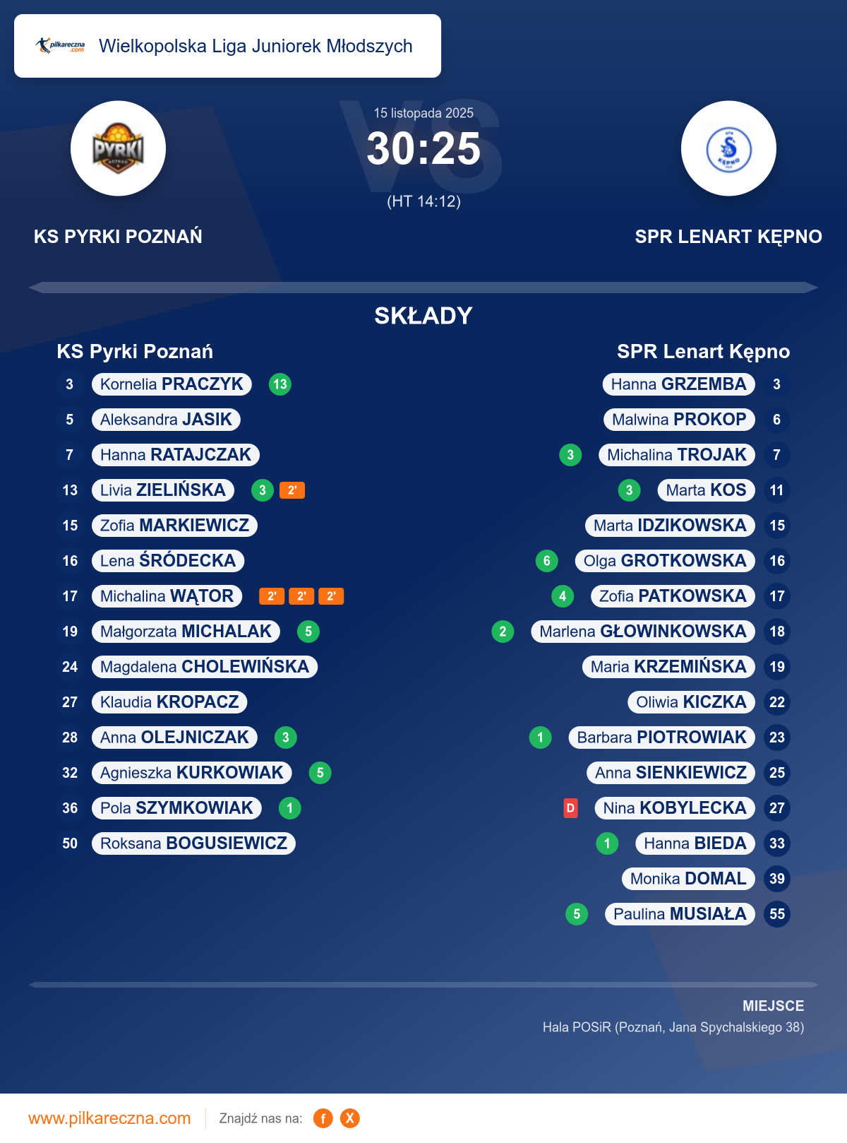 KS Pyrki Poznań 30–25 SPR Lenart Kępno