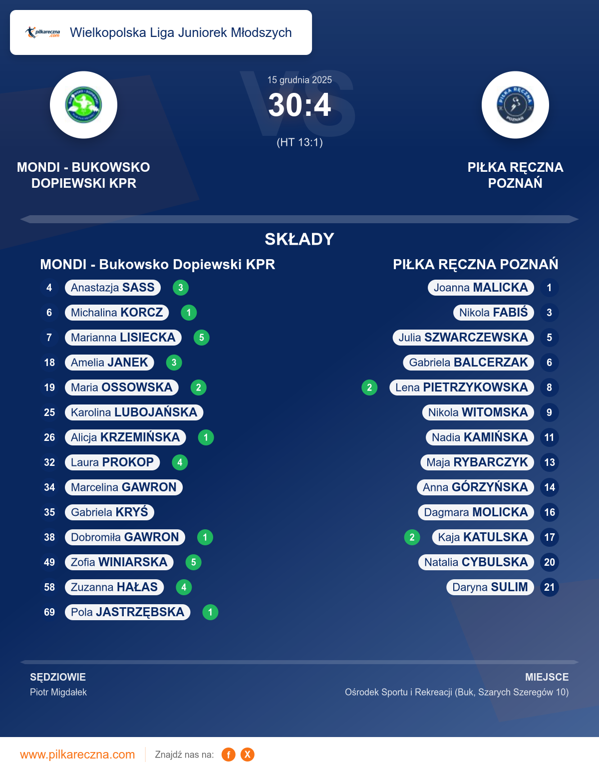 MONDI - Bukowsko Dopiewski KPR 30–4 PIŁKA RĘCZNA POZNAŃ