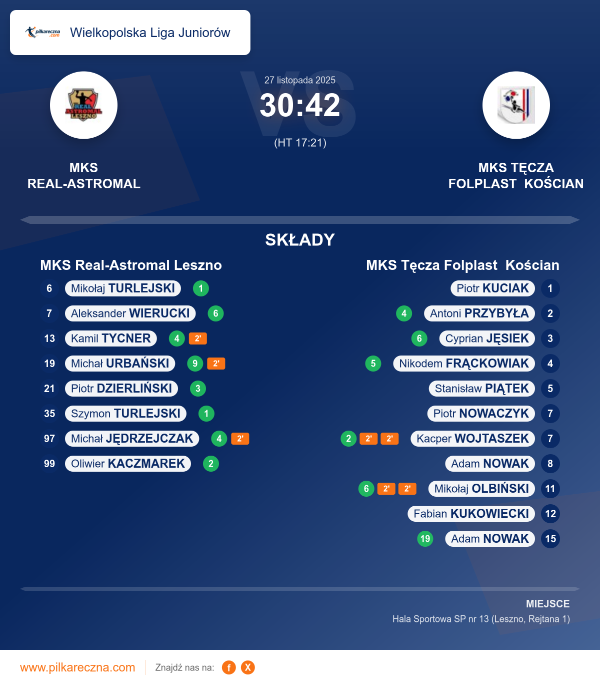 MKS Real-Astromal Leszno — MKS Tęcza Folplast Kościan
