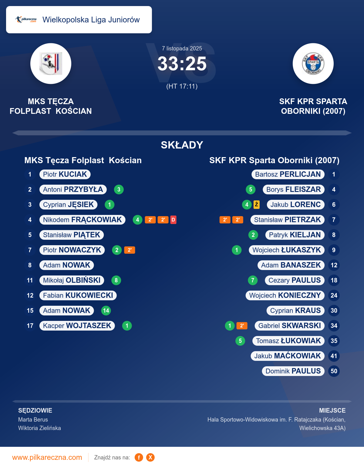 Wynik: 33–25 (HT 17–11)
