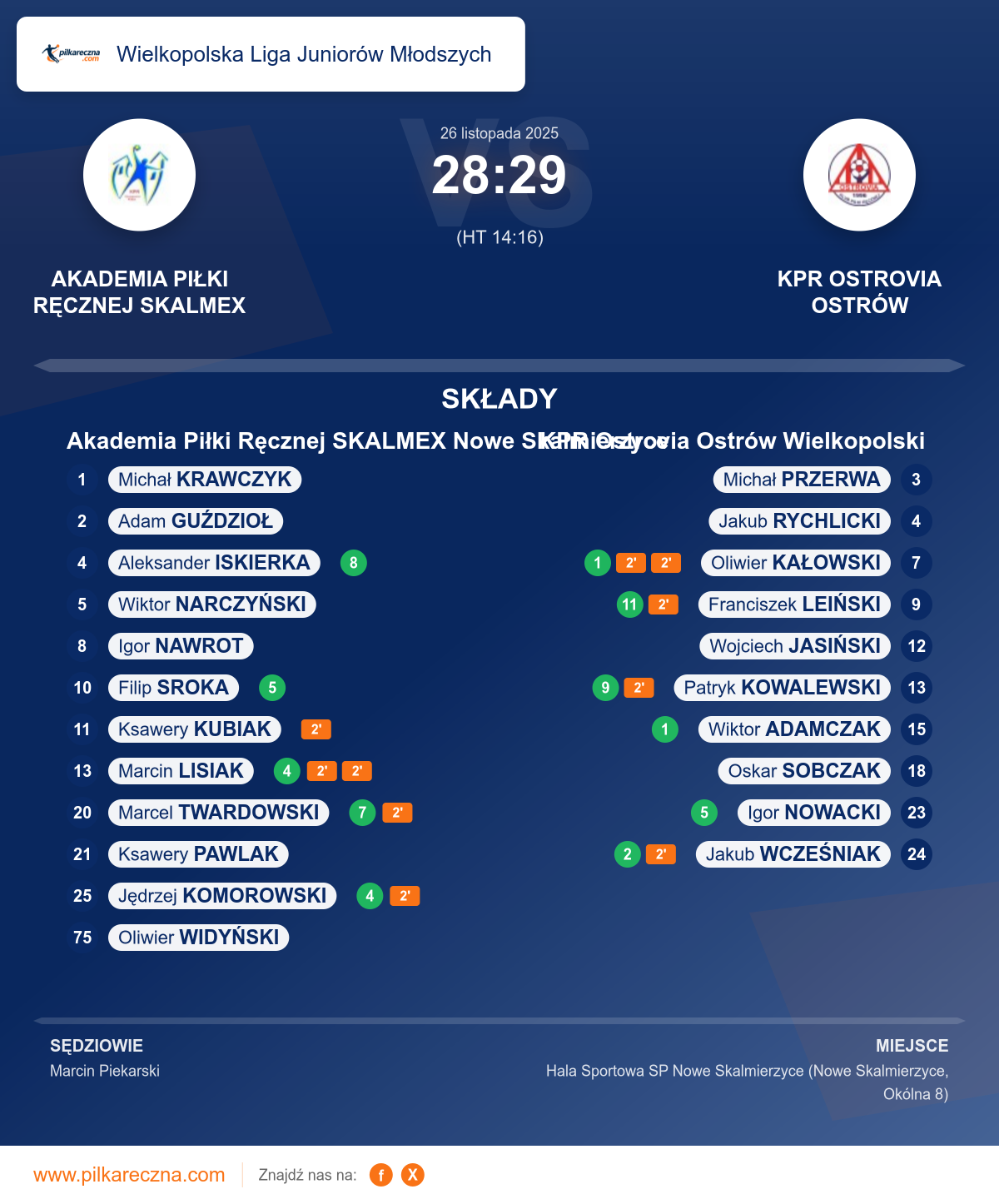 Akademia Piłki Ręcznej SKALMEX Nowe Skalmierzyce 28–29 KPR Ostrovia Ostrów Wielkopolski