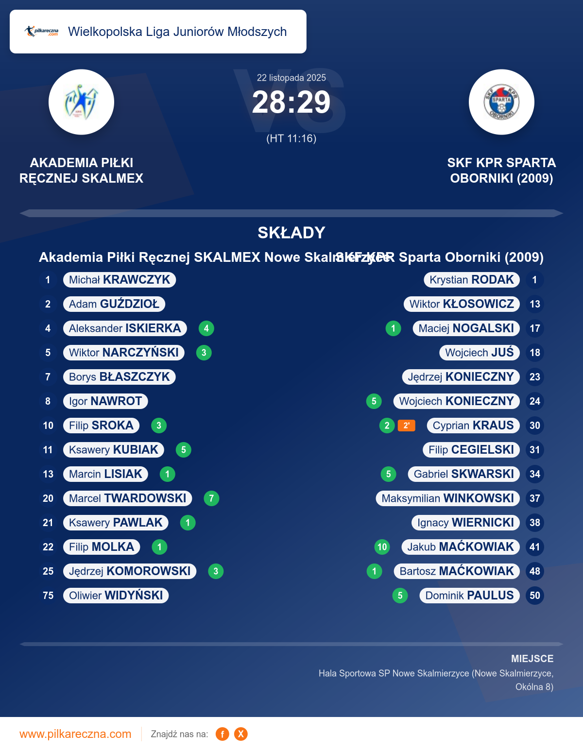 Akademia Piłki Ręcznej SKALMEX Nowe Skalmierzyce 28–29 SKF KPR Sparta Oborniki (2009)