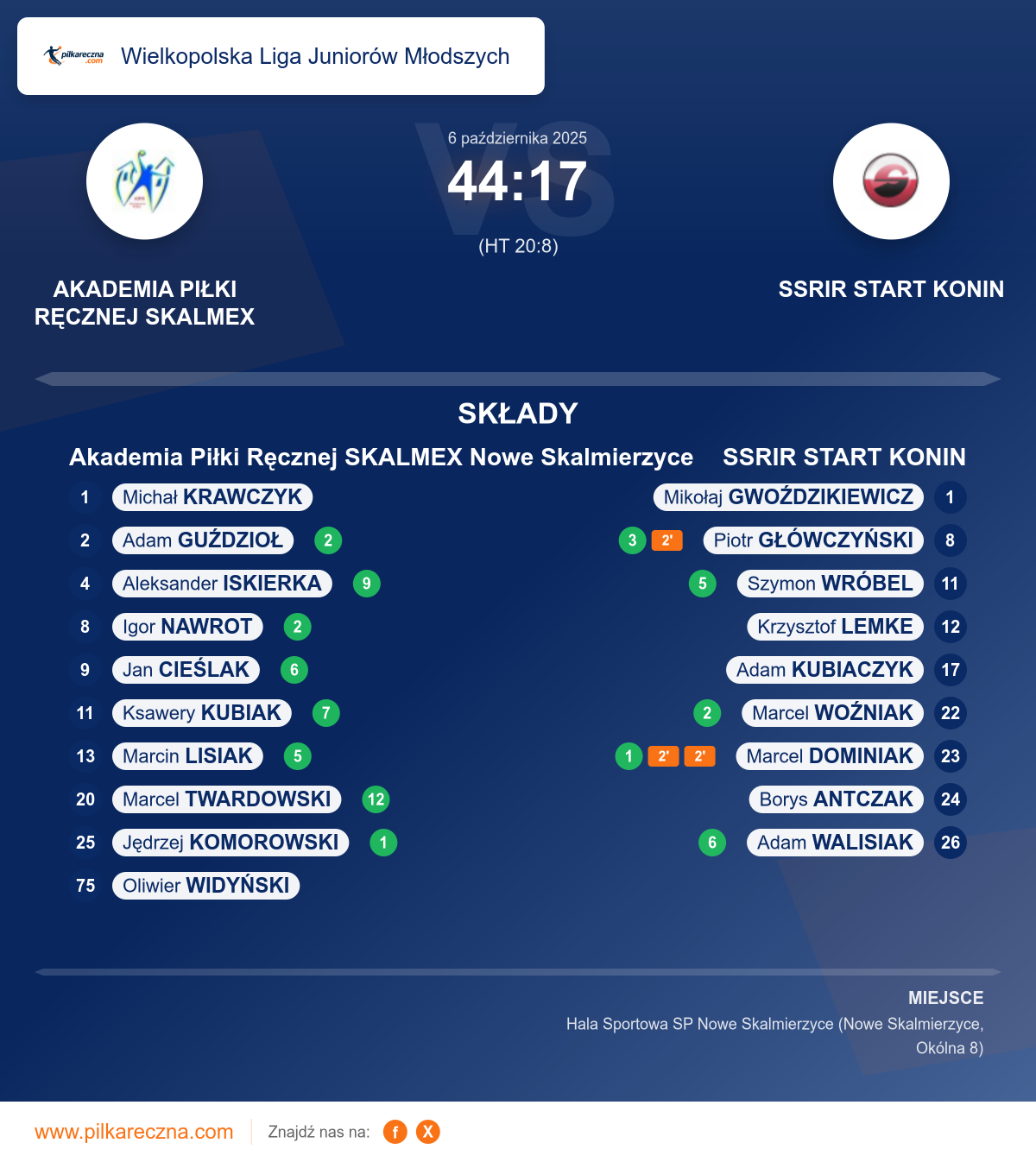Akademia Piłki Ręcznej SKALMEX Nowe Skalmierzyce 44–17 SSRIR START KONIN