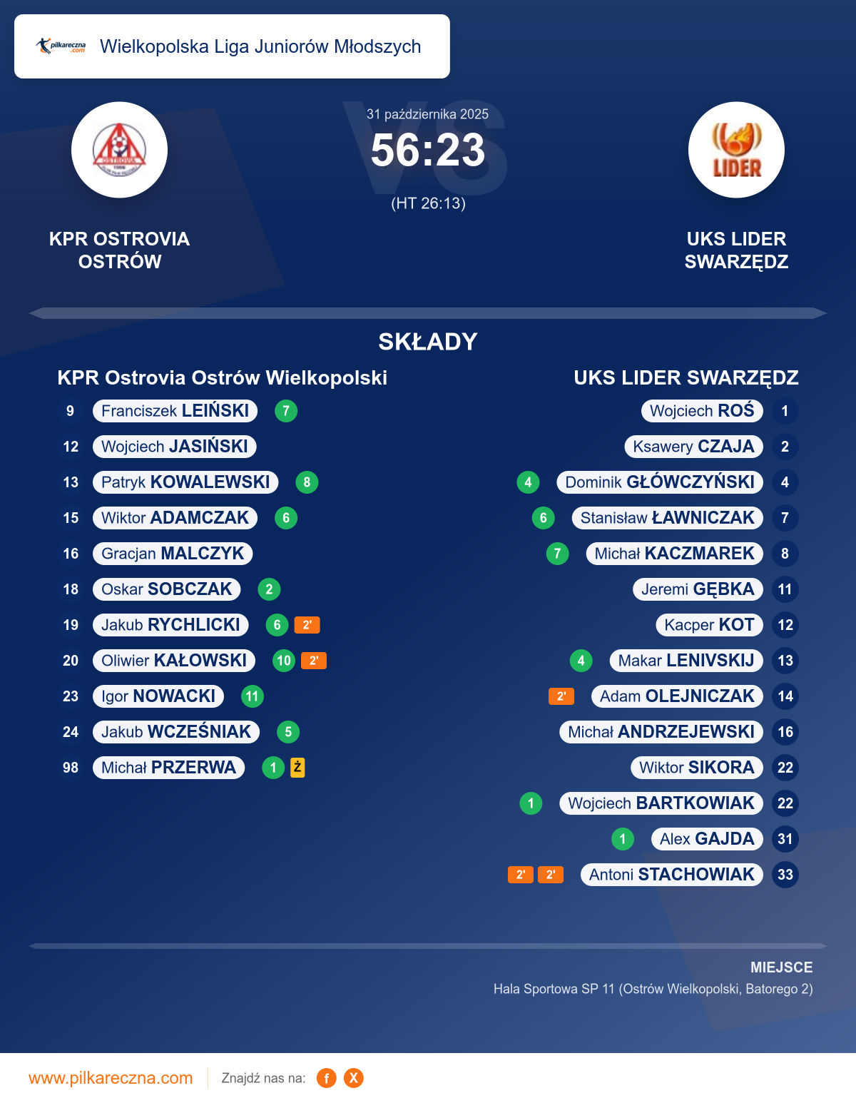 KPR Ostrovia Ostrów Wielkopolski — UKS LIDER SWARZĘDZ