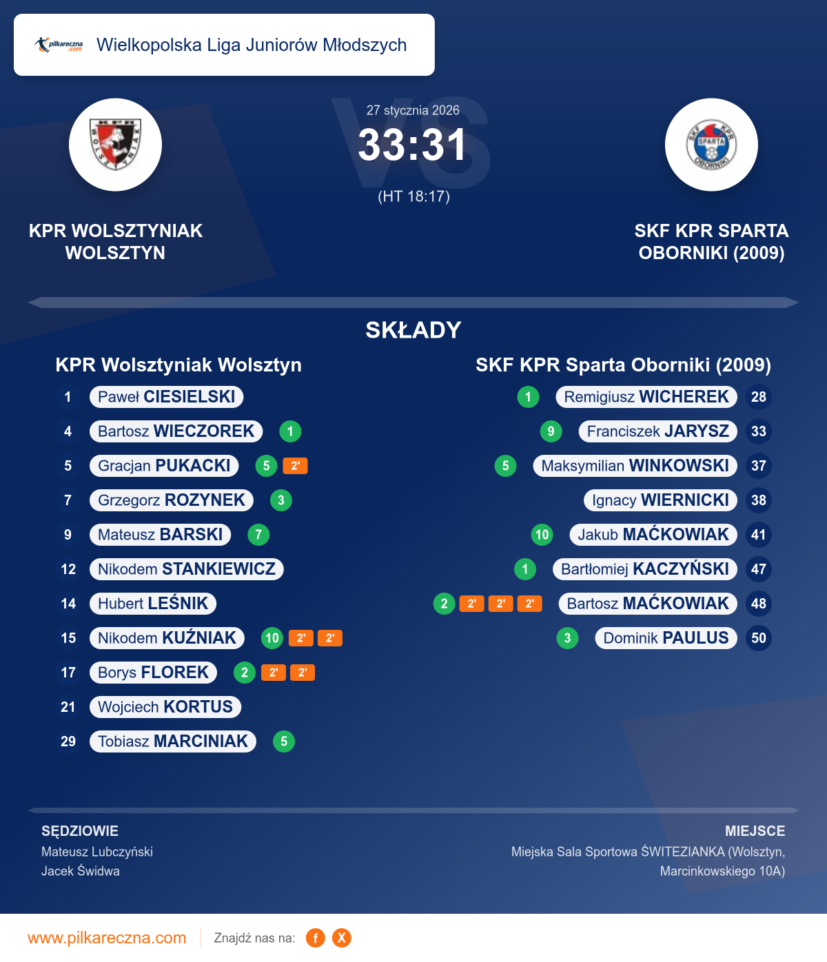 Sędziowali: Mateusz Lubczyński, Jacek Świdwa