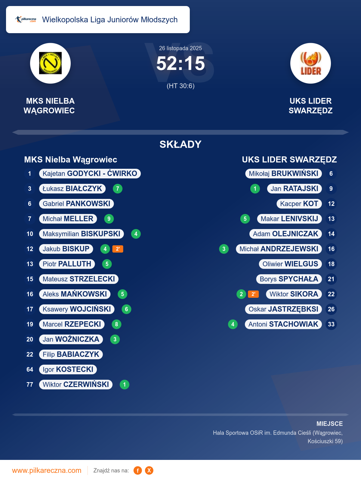 MKS Nielba Wągrowiec 52–15 UKS LIDER SWARZĘDZ