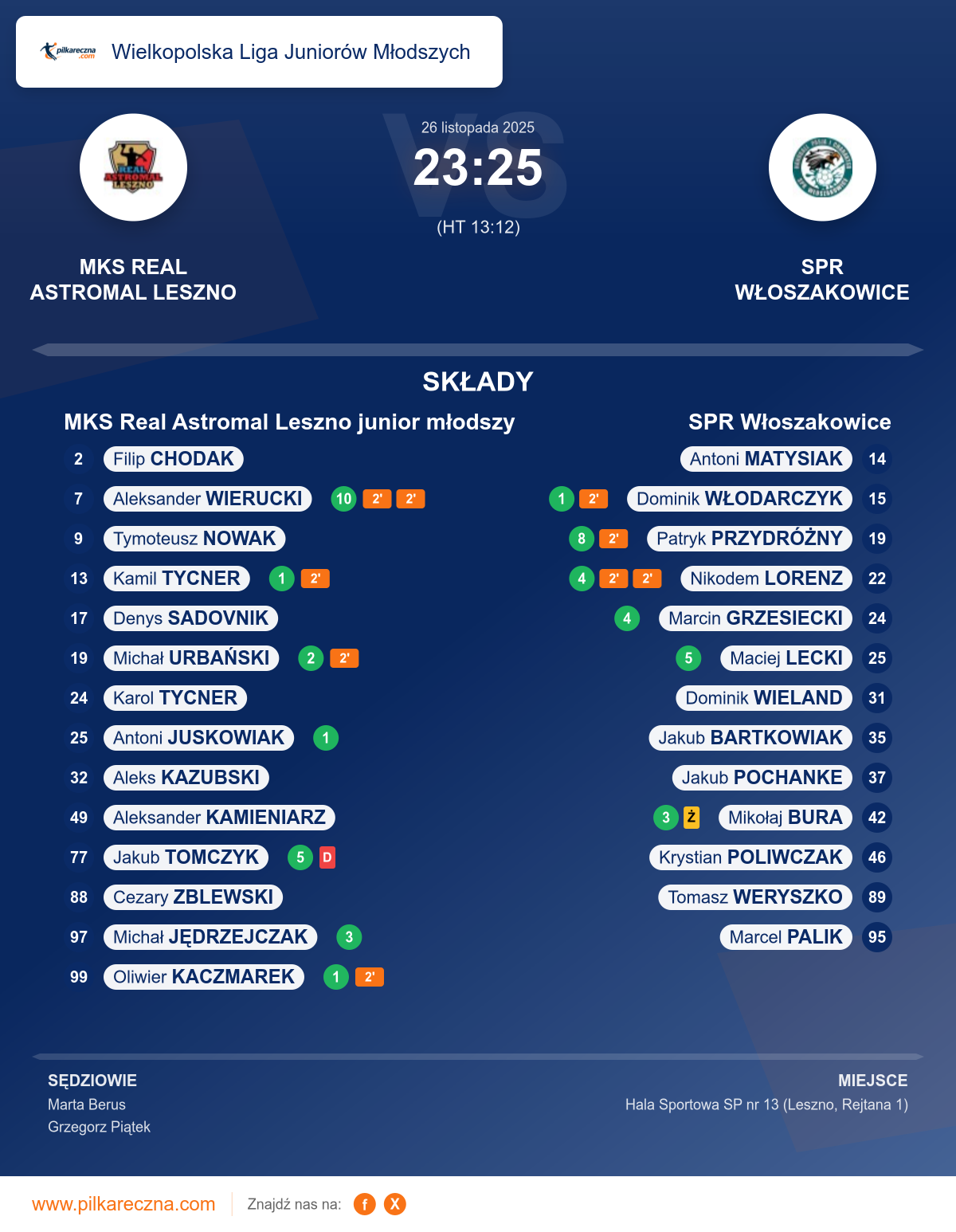 MKS Real Astromal Leszno junior młodszy 23–25 SPR Włoszakowice