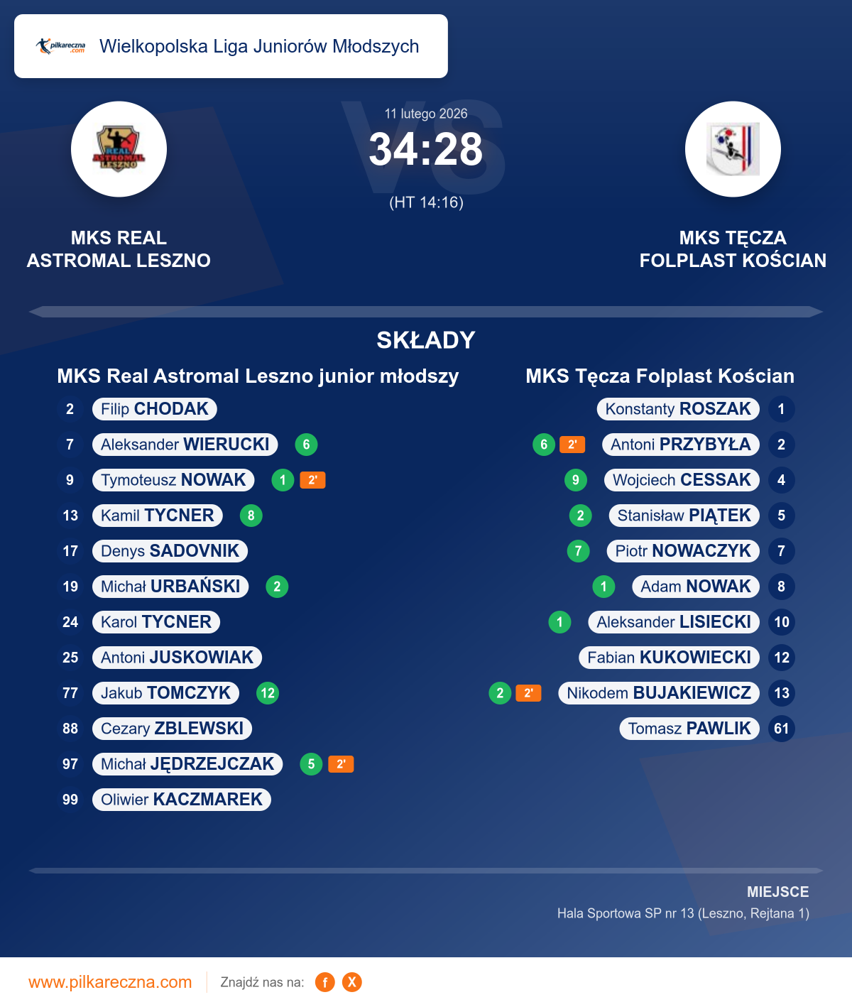 MKS Real Astromal Leszno junior młodszy 34–28 MKS Tęcza Folplast Kościan