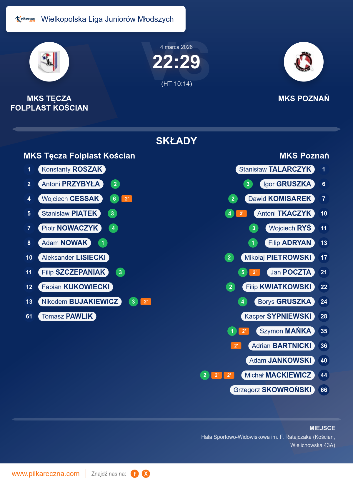 Hala: Hala Sportowo-Widowiskowa im. F. Ratajczaka (Kościan, Wielichowska 43A)