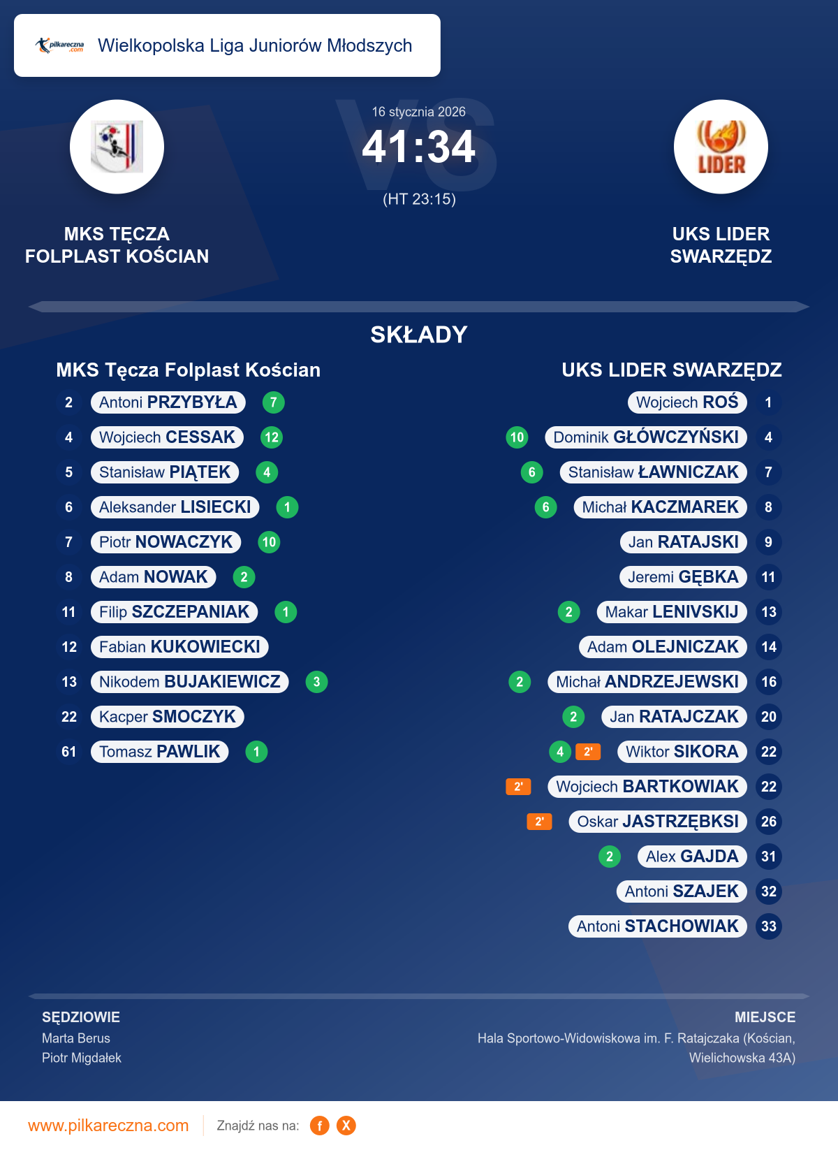 Hala: Hala Sportowo-Widowiskowa im. F. Ratajczaka (Kościan, Wielichowska 43A)