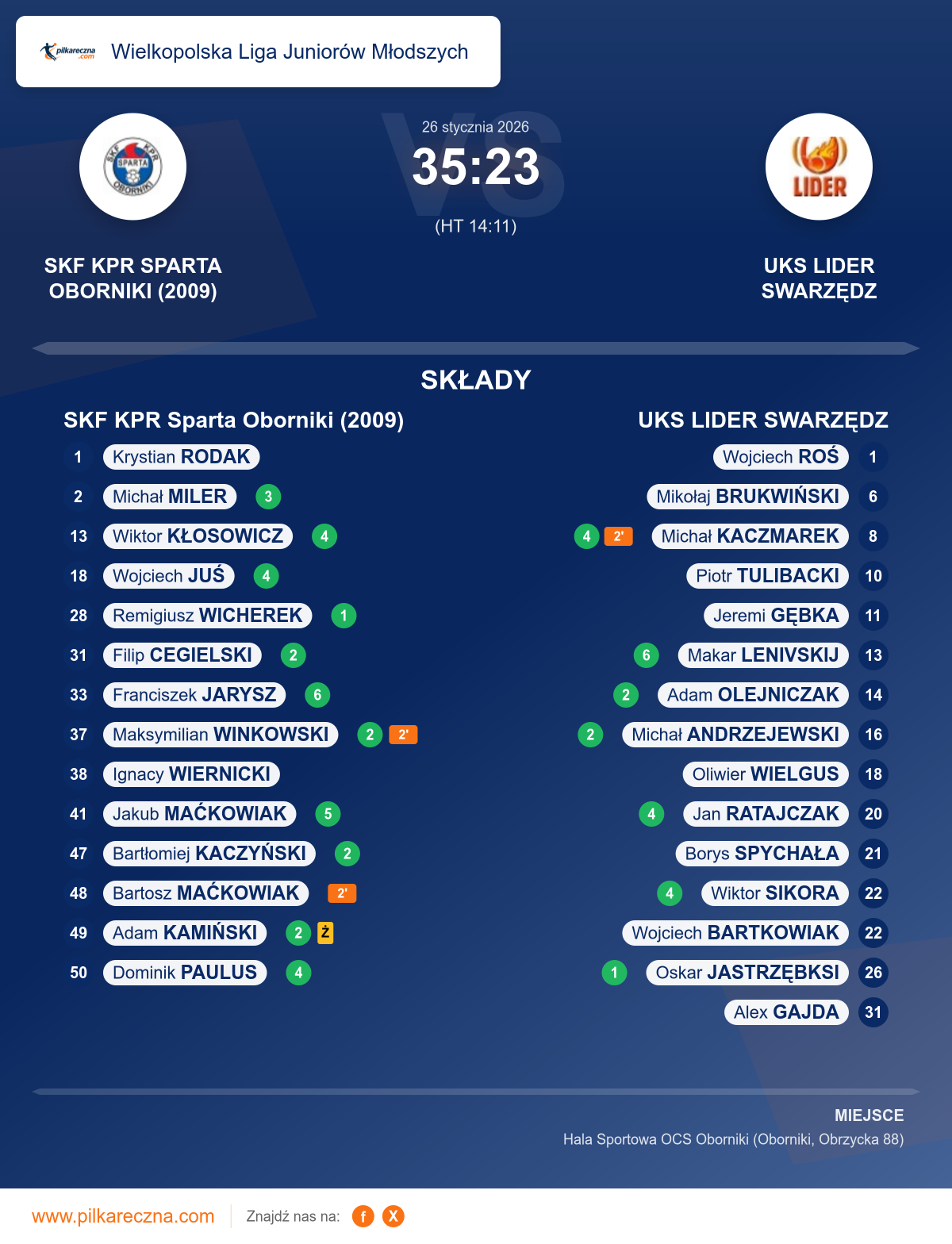 SKF KPR Sparta Oborniki (2009) 35–23 UKS LIDER SWARZĘDZ