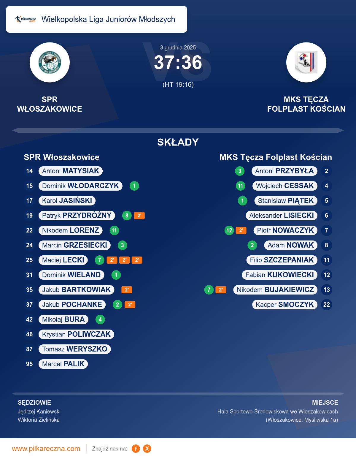 SPR Włoszakowice 37–36 MKS Tęcza Folplast Kościan