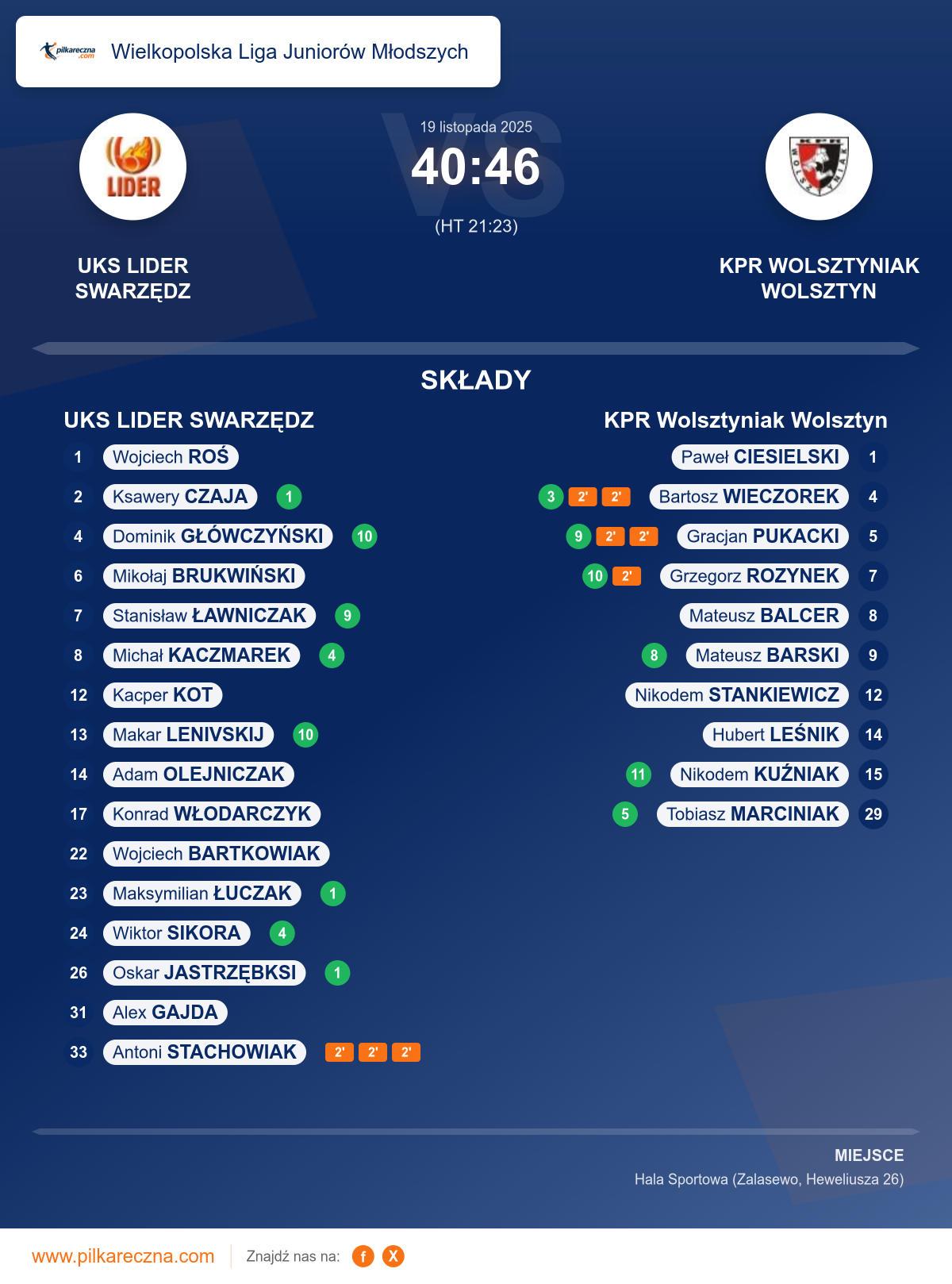 UKS LIDER SWARZĘDZ 40–46 KPR Wolsztyniak Wolsztyn
