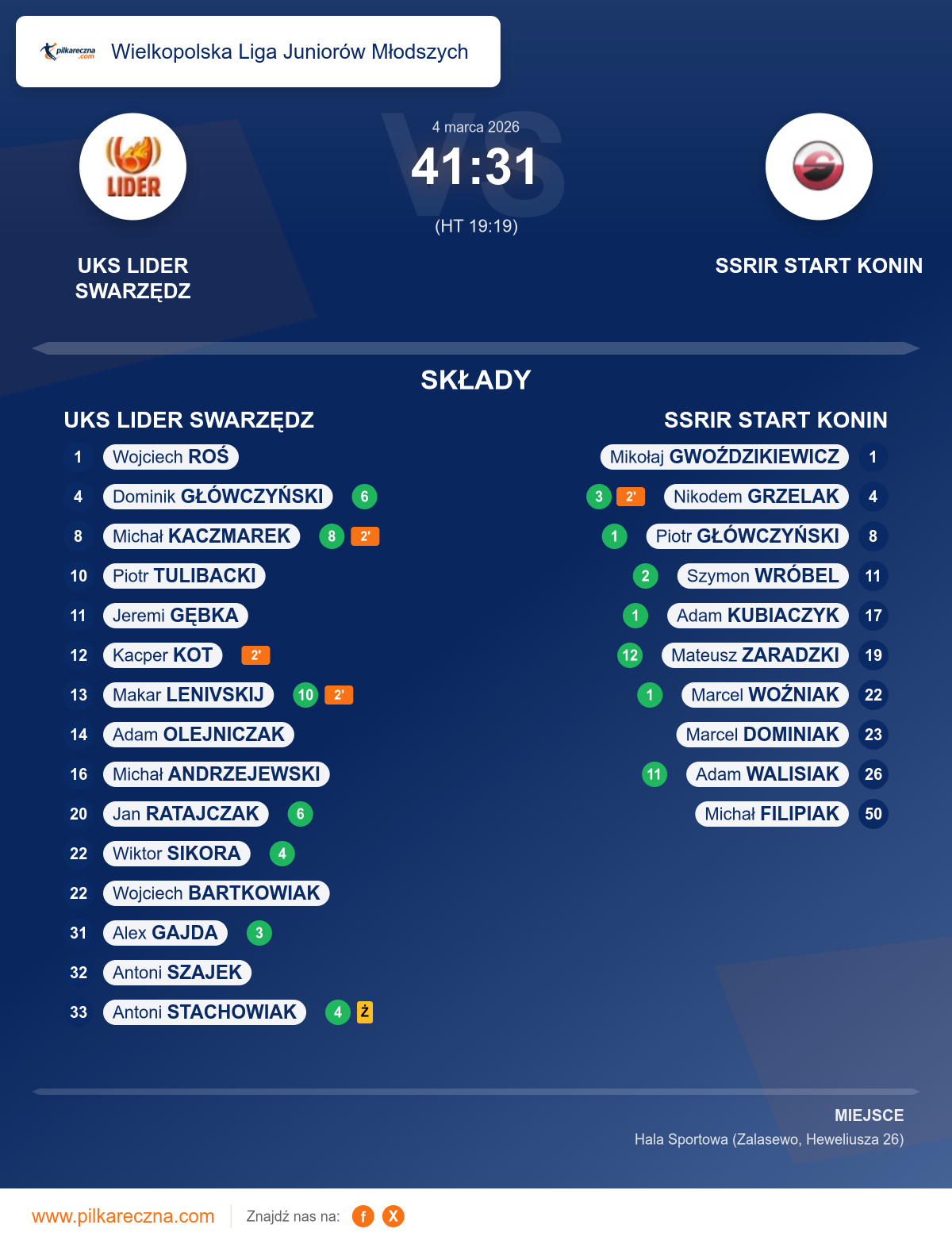 UKS LIDER SWARZĘDZ — SSRIR START KONIN