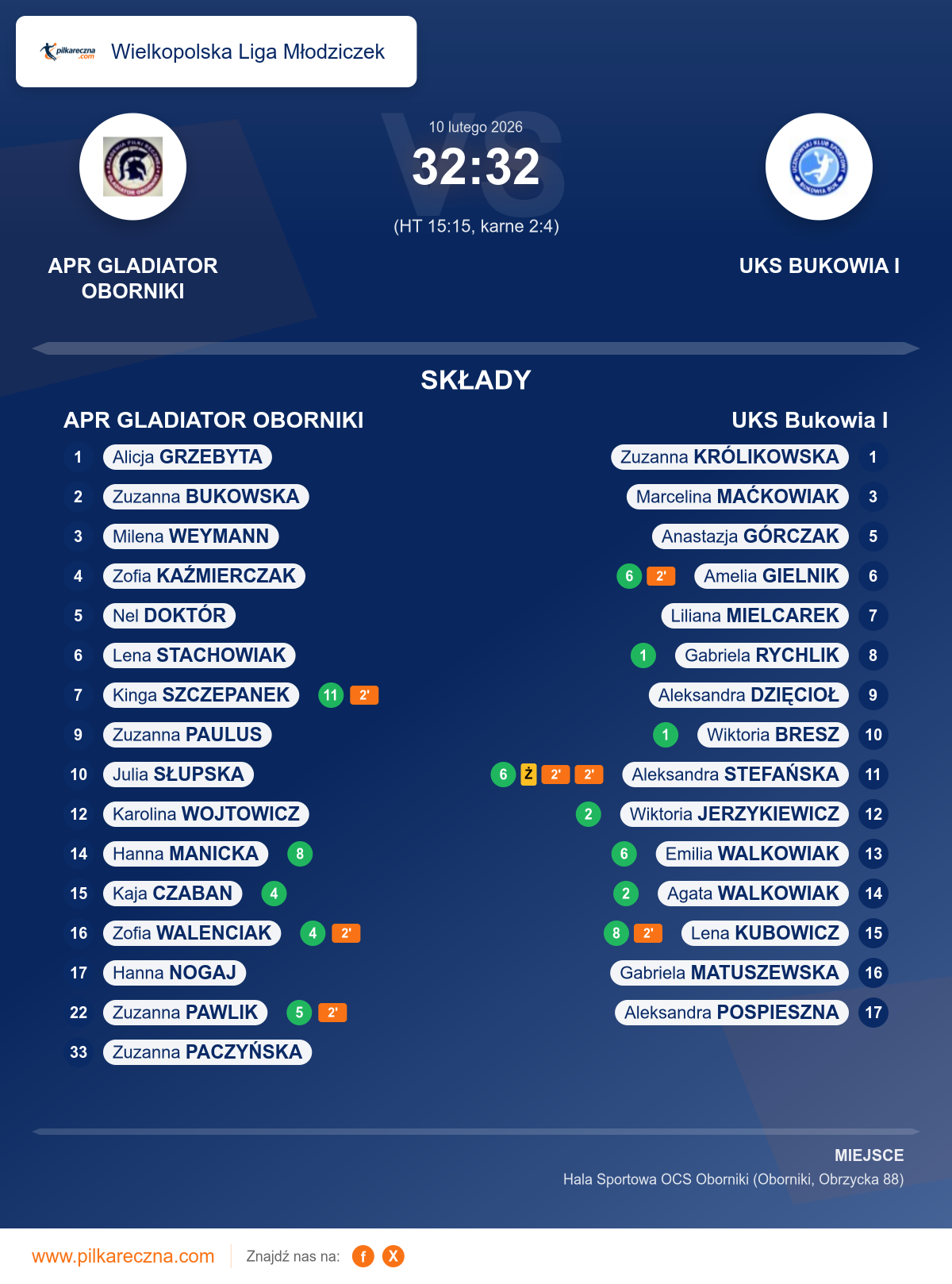 APR GLADIATOR OBORNIKI 32–32 UKS Bukowia I