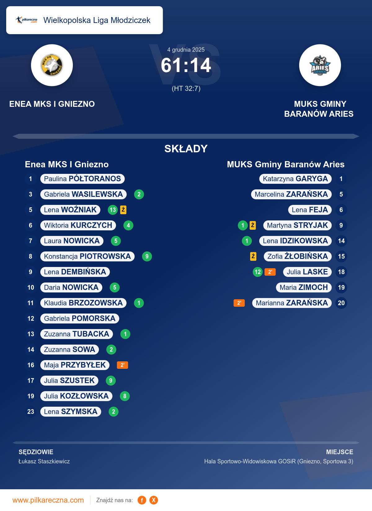 Enea MKS I Gniezno 61–14 MUKS Gminy Baranów Aries