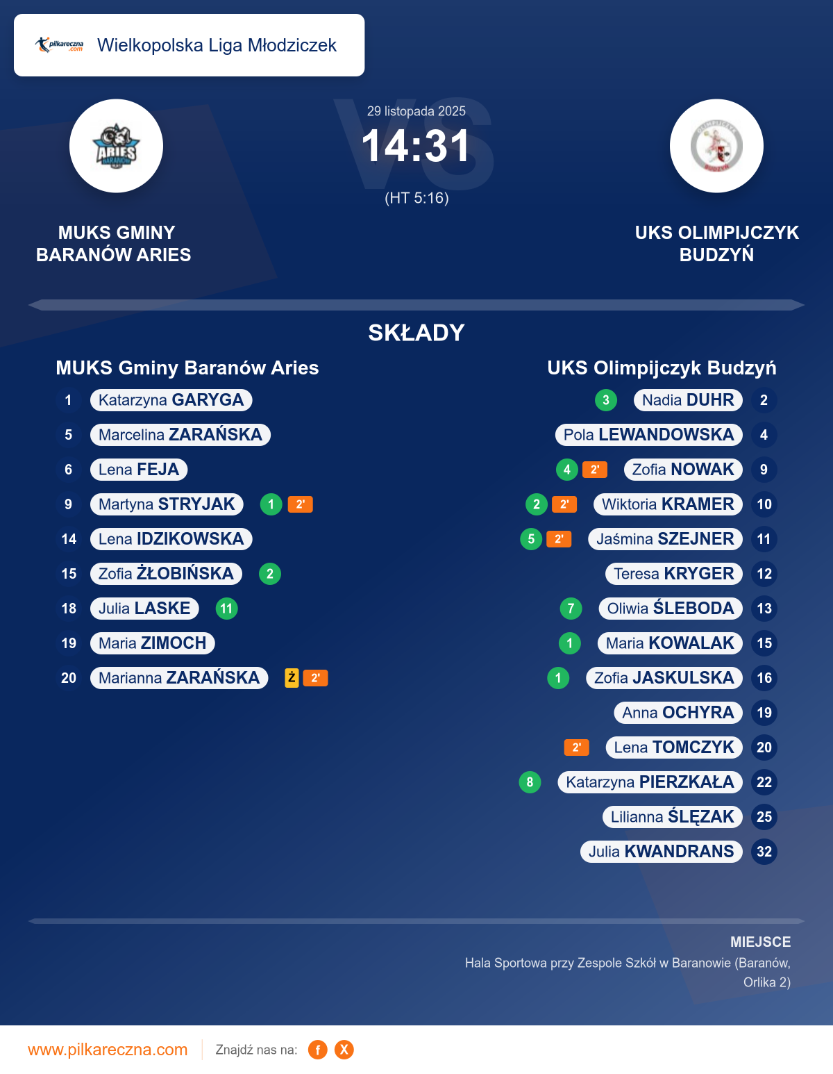 MUKS Gminy Baranów Aries 14–31 UKS Olimpijczyk Budzyń