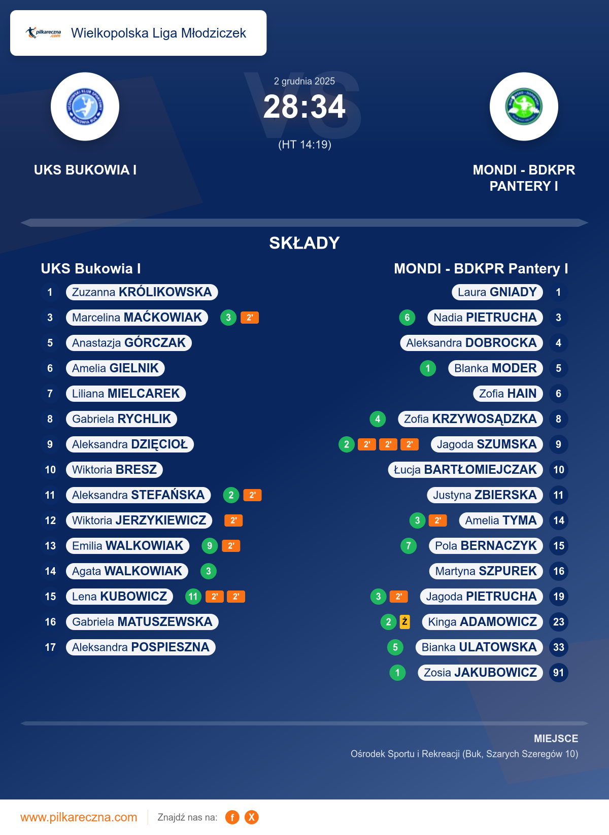 Zawodnicy: Pola Bernaczyk (7), Nadia Pietrucha (6), Bianka Ulatowska (5), Zofia Krzywosądzka (4), Amelia Tyma (3), Jagoda Pietrucha (3), Jagoda Szumska (2), Kinga Adamowicz (2), Blanka Moder (1), Zosia Jakubowicz (1), Aleksandra Dobrocka, Justyna Zbierska, Łucja Bartłomiejczak, Zofia Hain