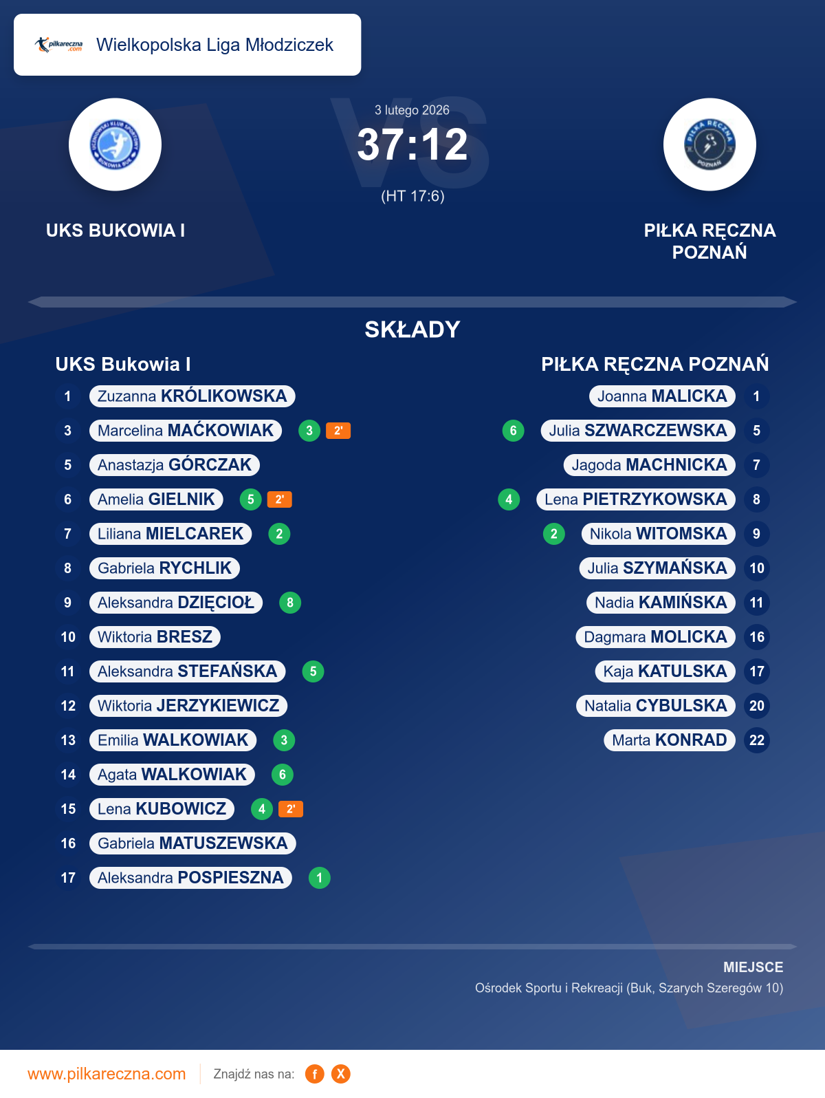 UKS Bukowia I 37–12 PIŁKA RĘCZNA POZNAŃ