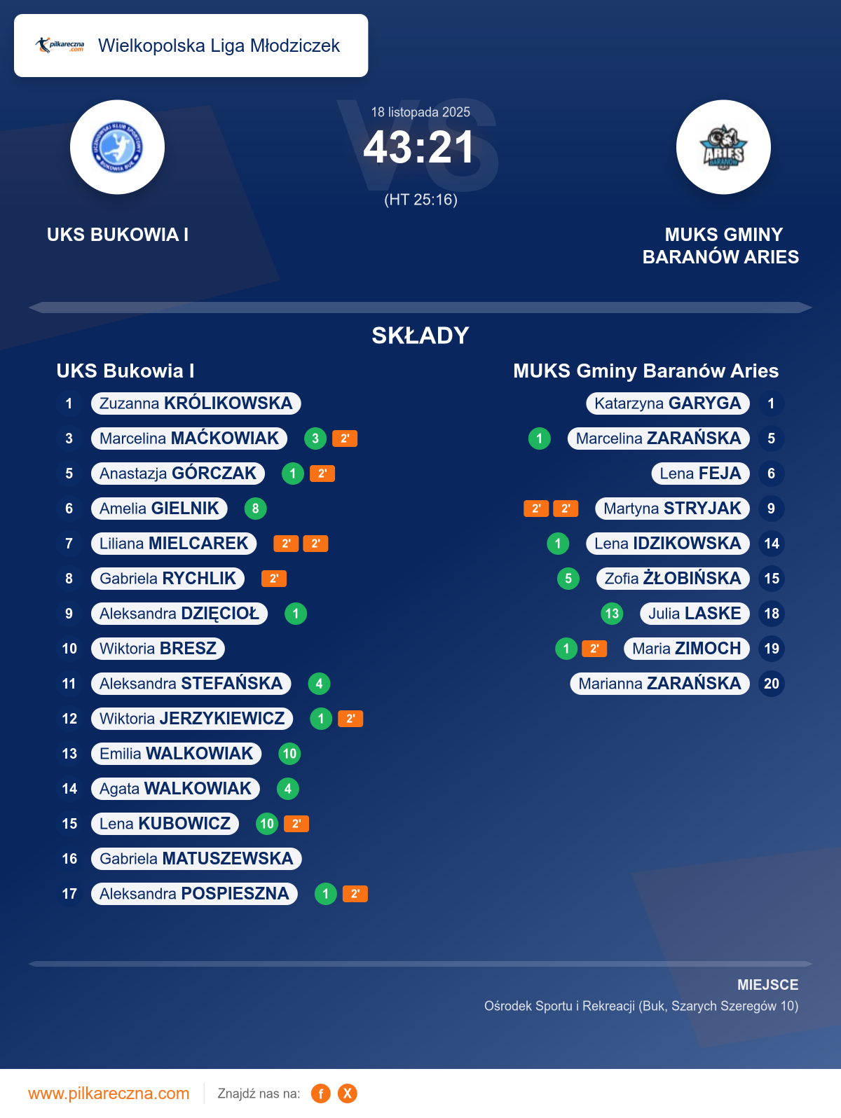 UKS Bukowia I 43–21 MUKS Gminy Baranów Aries
