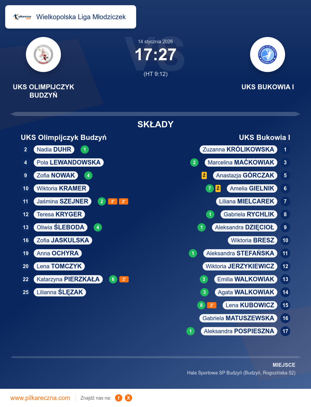 UKS Olimpijczyk Budzyń 17–27 UKS Bukowia I