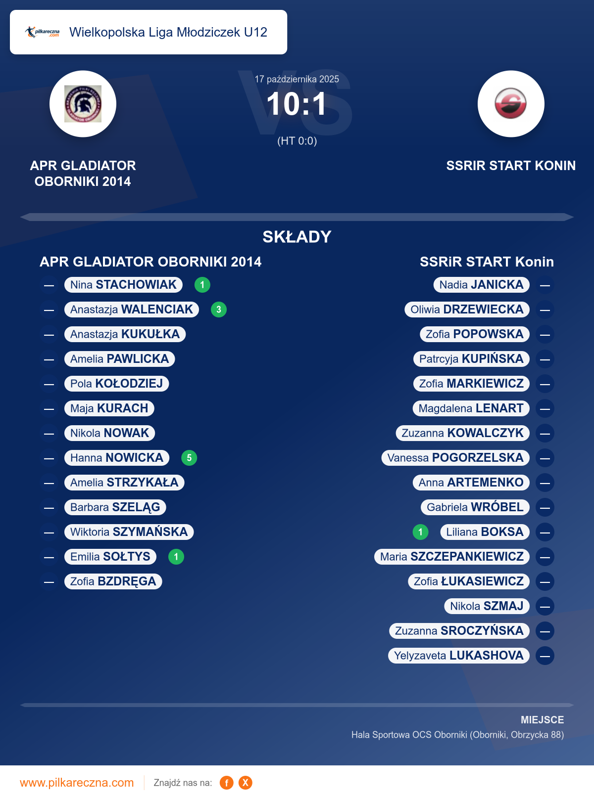 Zawodnicy: Hanna Nowicka (5), Anastazja Walenciak (3), Emilia Sołtys (1), Nina Stachowiak (1), Amelia Strzykała, Anastazja Kukułka, Barbara Szeląg, Maja Kurach, Nikola Nowak, Pola Kołodziej, Wiktoria Szymańska, Zofia Bzdręga