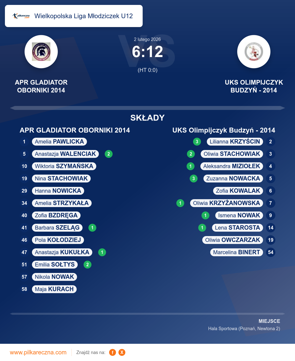 Zawodnicy: Lilianna Krzyścin (3), Zuzanna Nowacka (3), Oliwia Stachowiak (2), Aleksandra Miziołek (1), Ismena Nowak (1), Lena Starosta (1), Oliwia Krzyżanowska (1), Oliwia Owczarzak, Zofia Kowalak