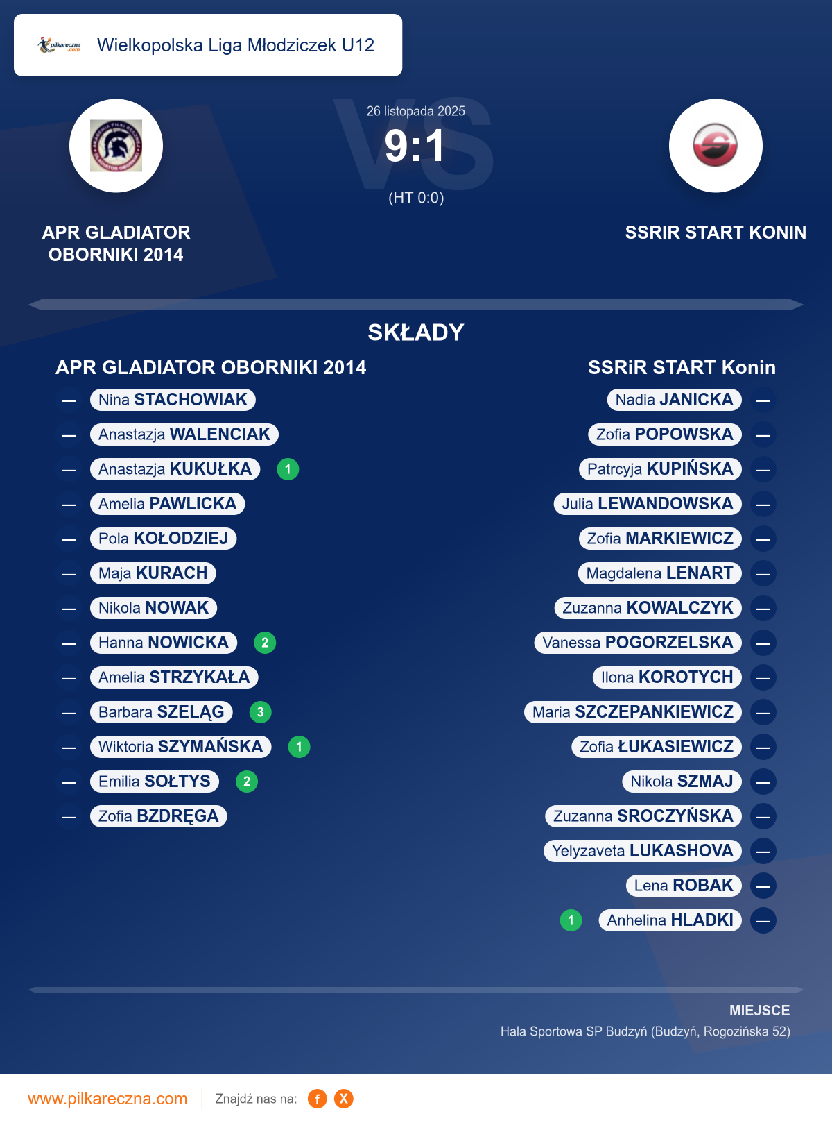 Zawodnicy: Barbara Szeląg (3), Emilia Sołtys (2), Hanna Nowicka (2), Anastazja Kukułka (1), Wiktoria Szymańska (1), Amelia Strzykała, Anastazja Walenciak, Maja Kurach, Nikola Nowak, Nina Stachowiak, Pola Kołodziej, Zofia Bzdręga