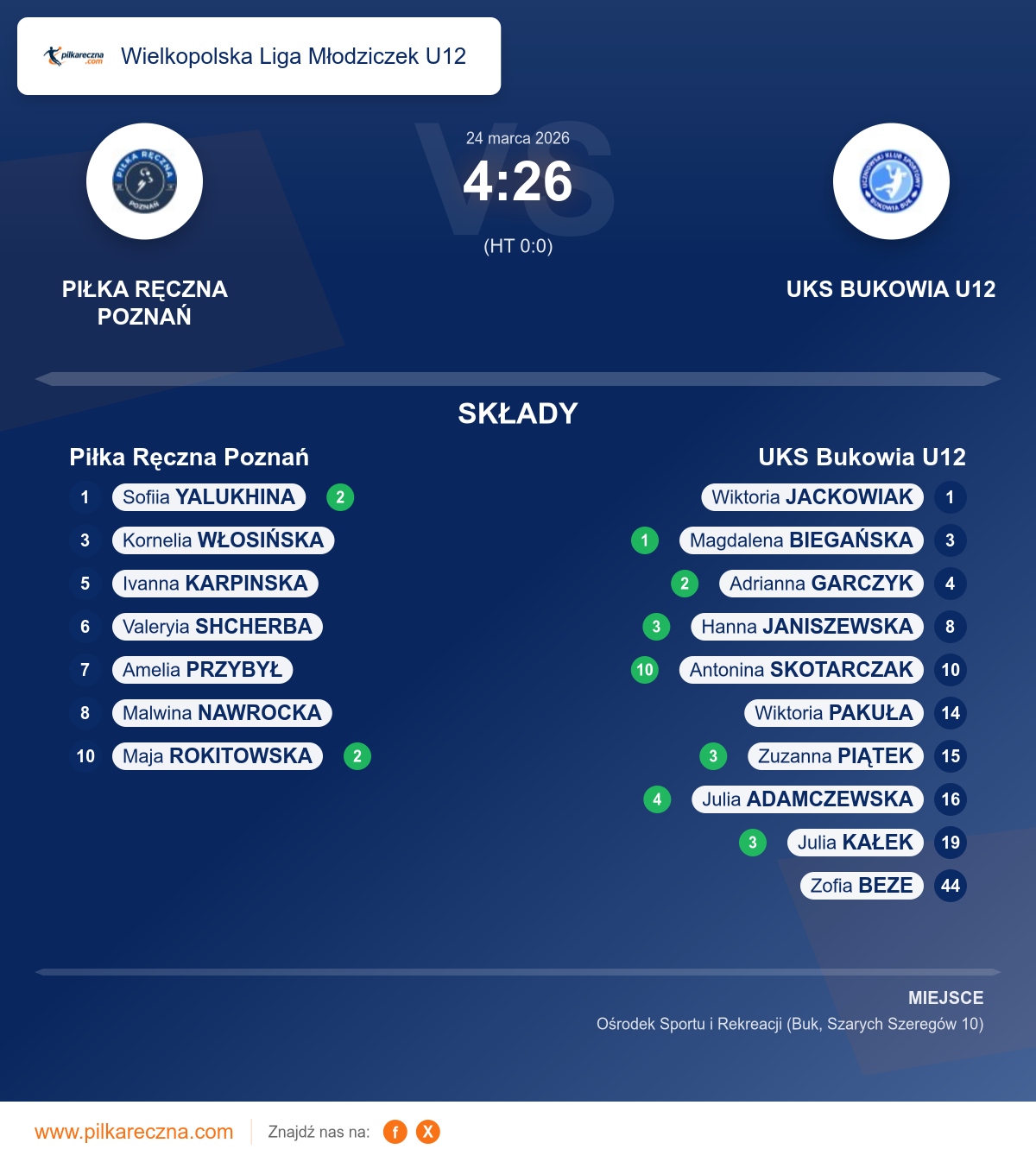 Piłka Ręczna Poznań 4–26 UKS Bukowia U12