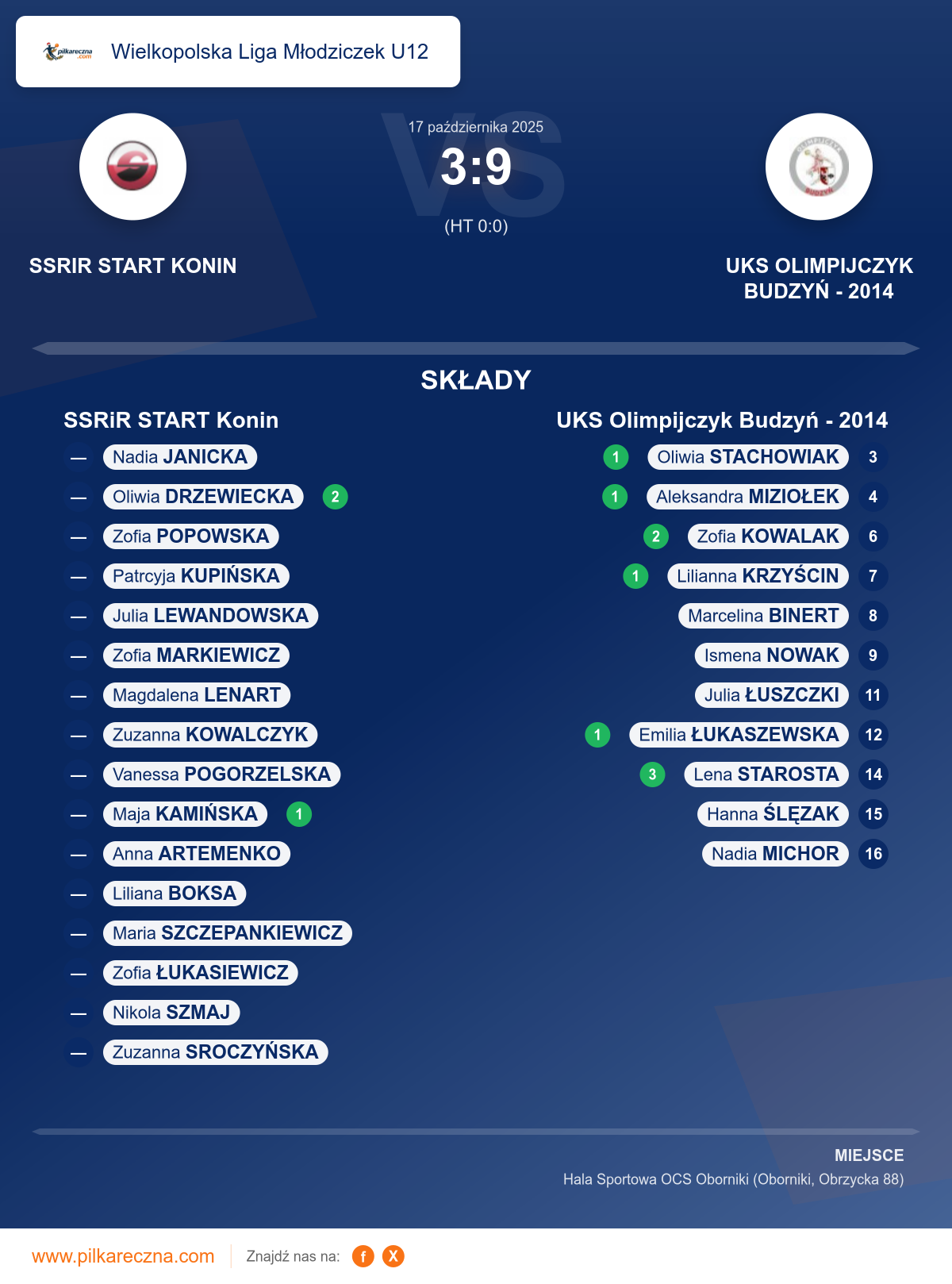 Zawodnicy: Lena Starosta (3), Zofia Kowalak (2), Aleksandra Miziołek (1), Emilia Łukaszewska (1), Lilianna Krzyścin (1), Oliwia Stachowiak (1), Hanna Ślęzak, Ismena Nowak, Julia Łuszczki, Nadia Michor