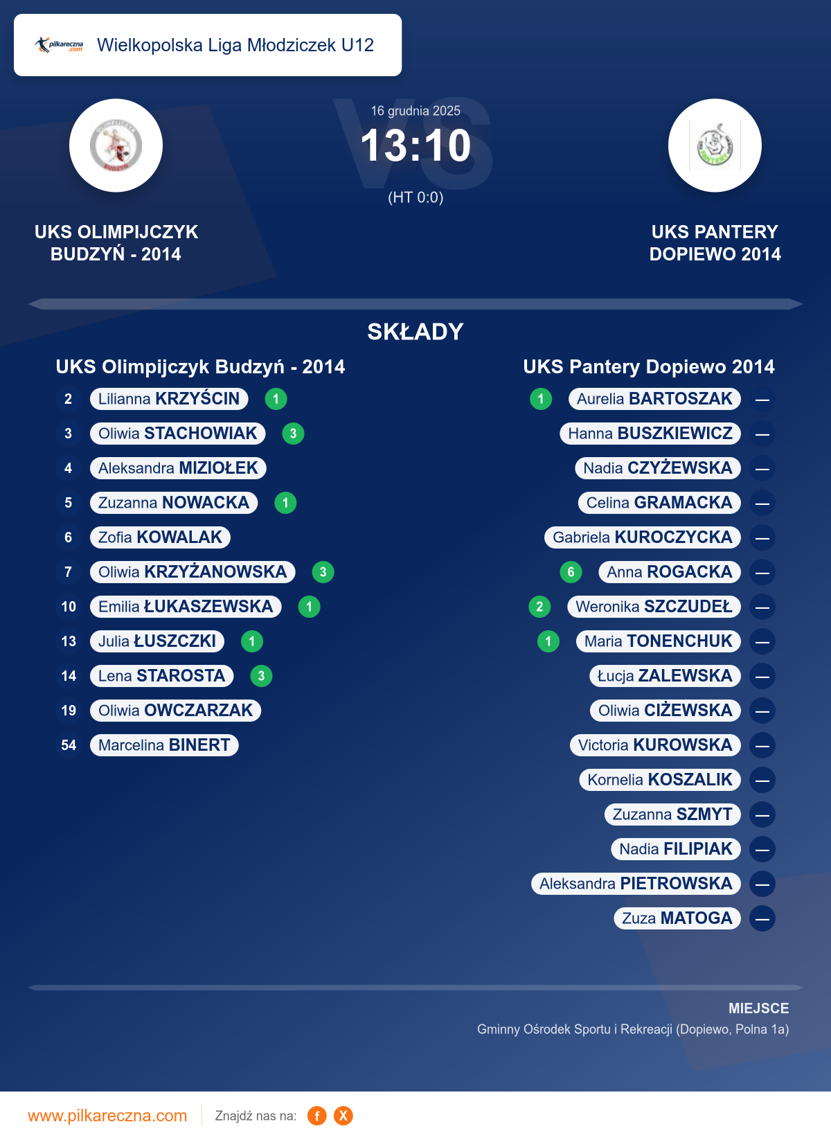 UKS Olimpijczyk Budzyń - 2014 13–10 UKS Pantery Dopiewo 2014