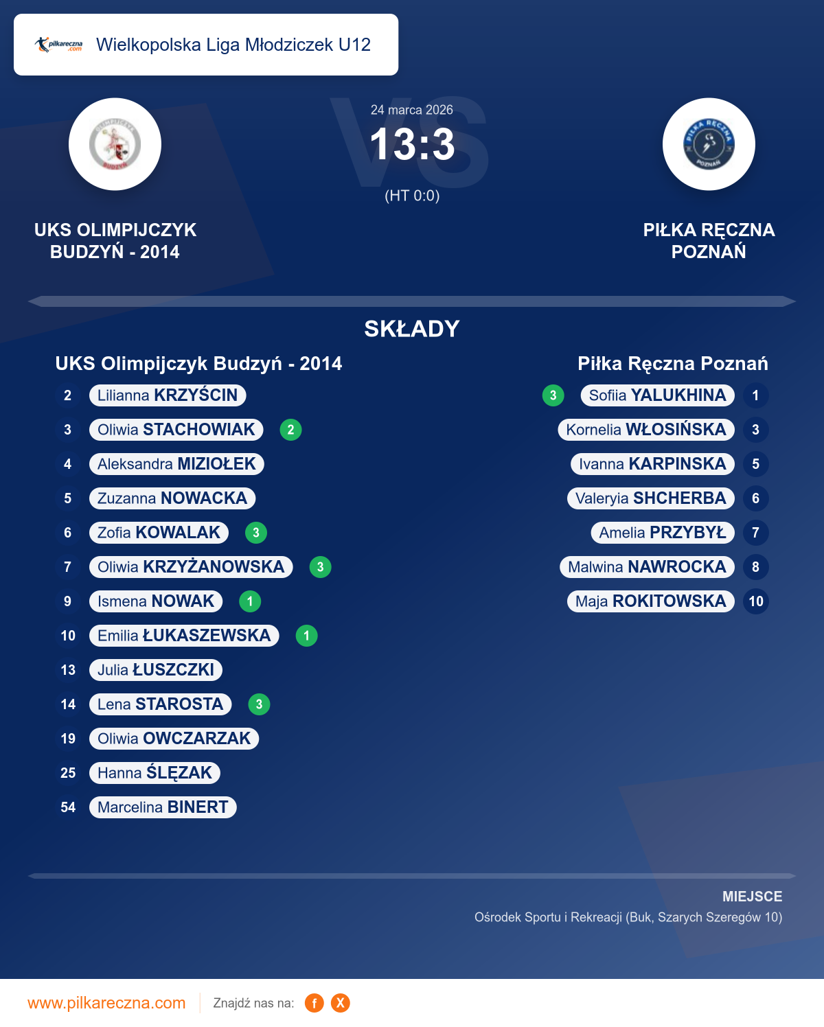 UKS Olimpijczyk Budzyń - 2014 13–3 Piłka Ręczna Poznań