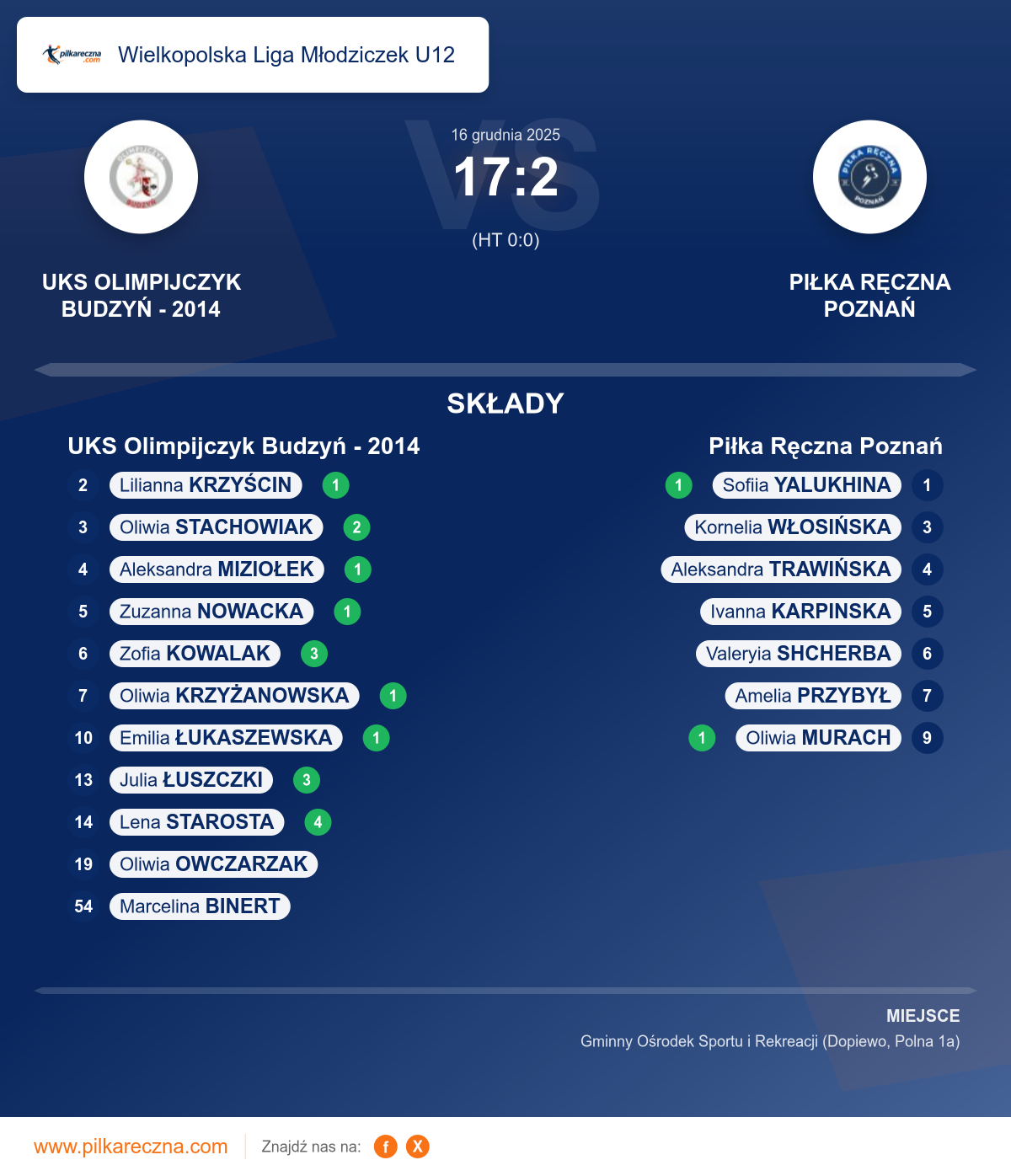 UKS Olimpijczyk Budzyń - 2014 17–2 Piłka Ręczna Poznań