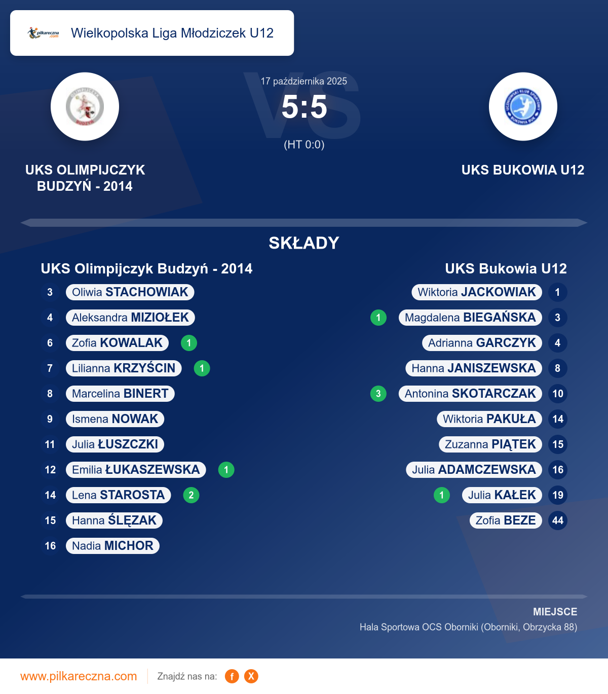 UKS Olimpijczyk Budzyń - 2014 5–5 UKS Bukowia U12