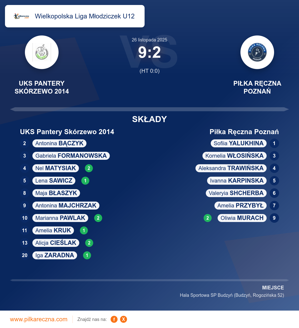 UKS Pantery Skórzewo 2014 9–2 Piłka Ręczna Poznań