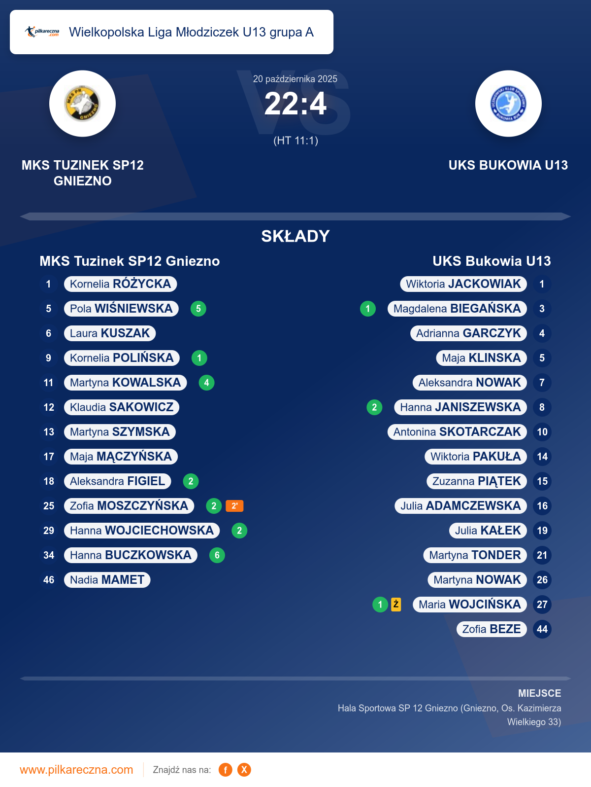 MKS Tuzinek SP12 Gniezno — UKS Bukowia U13