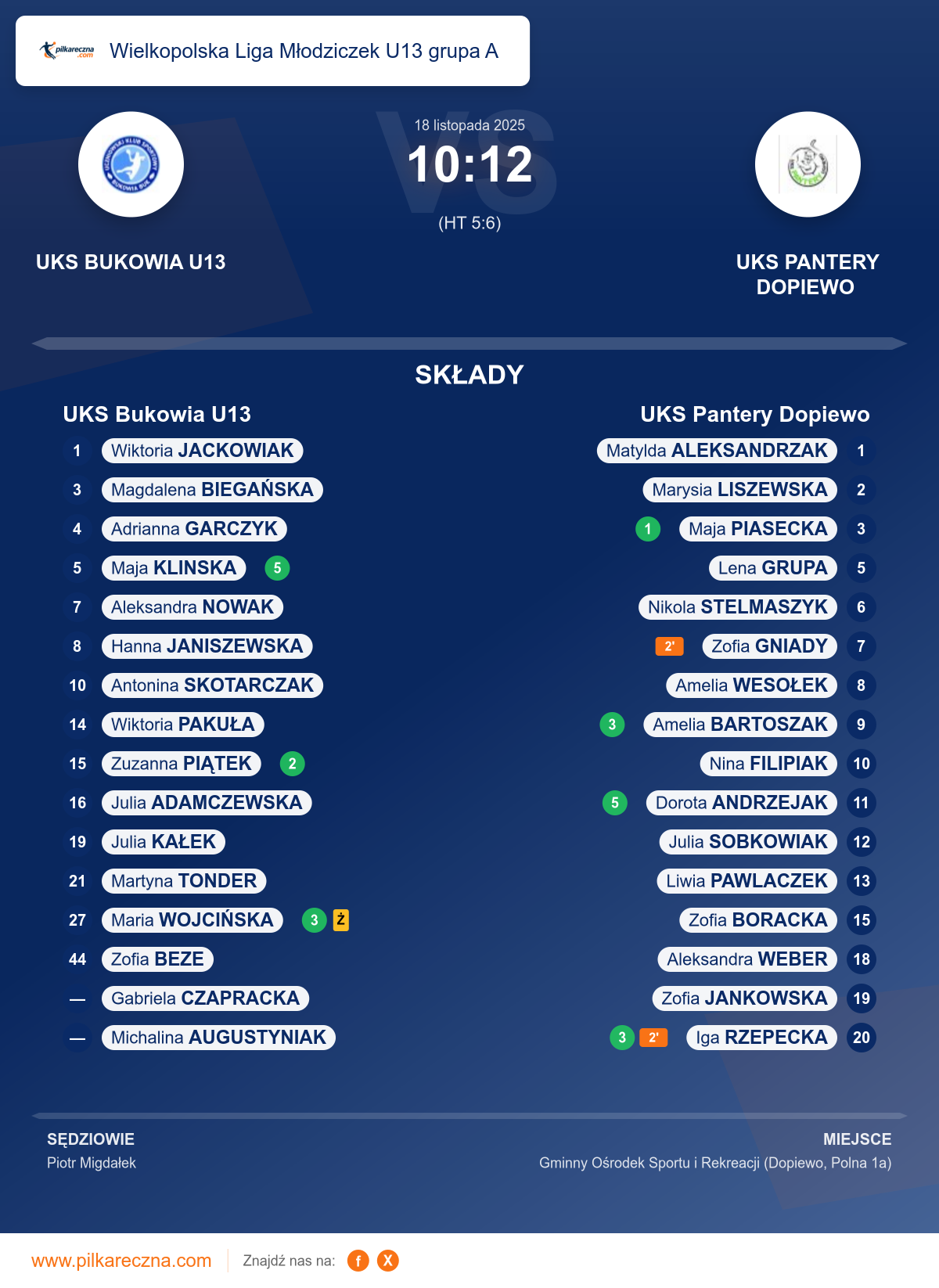UKS Bukowia U13 — UKS Pantery Dopiewo