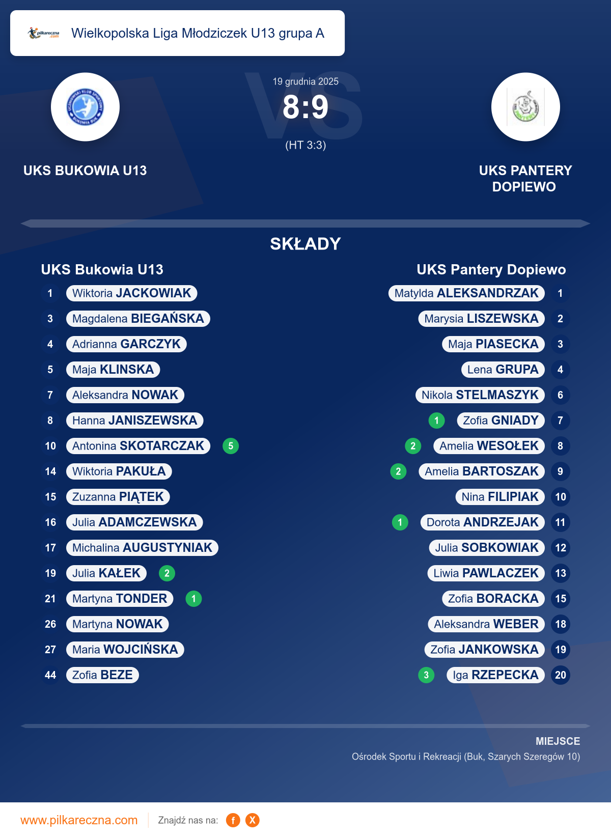 UKS Bukowia U13 8–9 UKS Pantery Dopiewo
