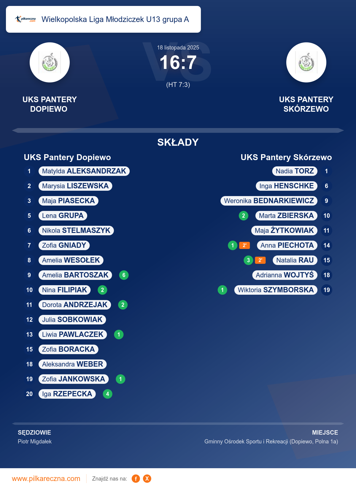 UKS Pantery Dopiewo 16–7 UKS Pantery Skórzewo