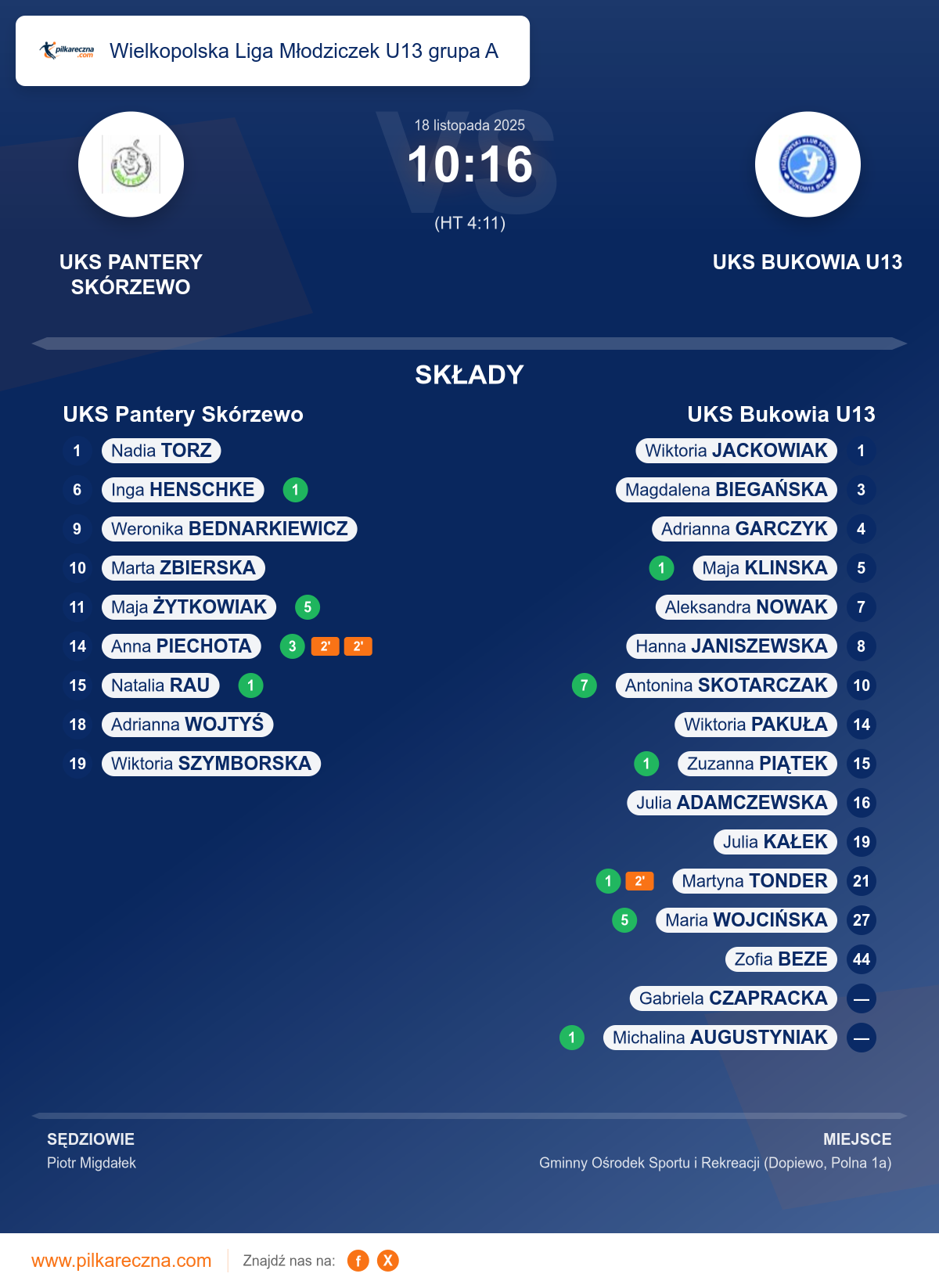UKS Pantery Skórzewo 10–16 UKS Bukowia U13