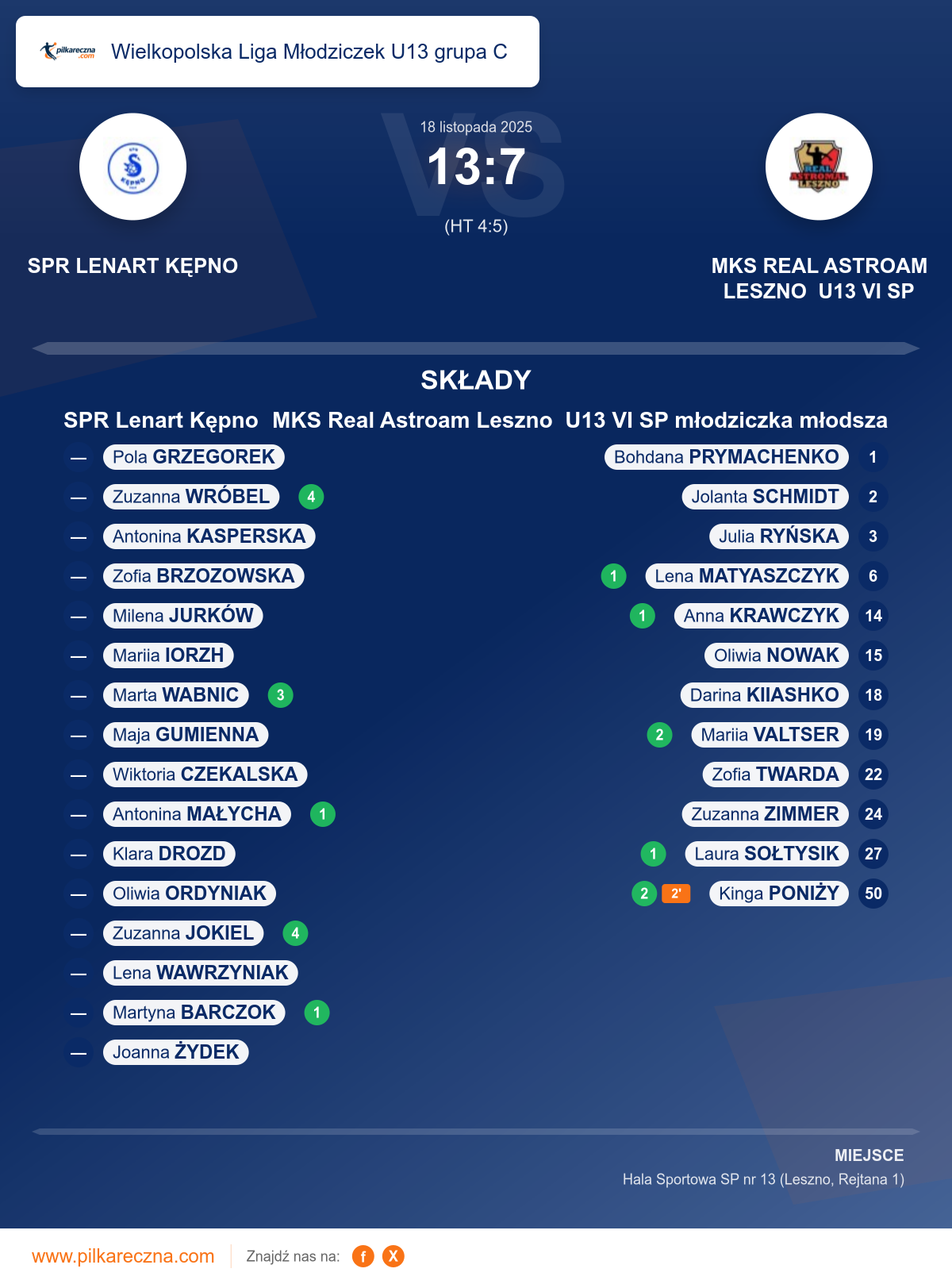 SPR Lenart Kępno — MKS Real Astroam Leszno U13 VI SP młodziczka młodsza