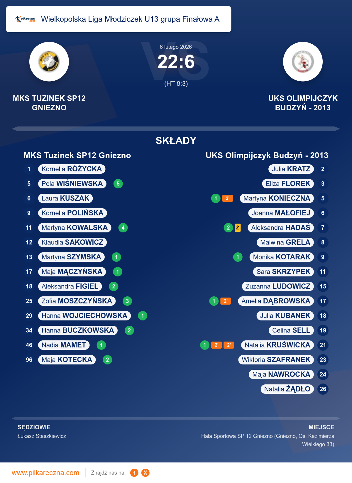 MKS Tuzinek SP12 Gniezno 22–6 UKS Olimpijczyk Budzyń - 2013
