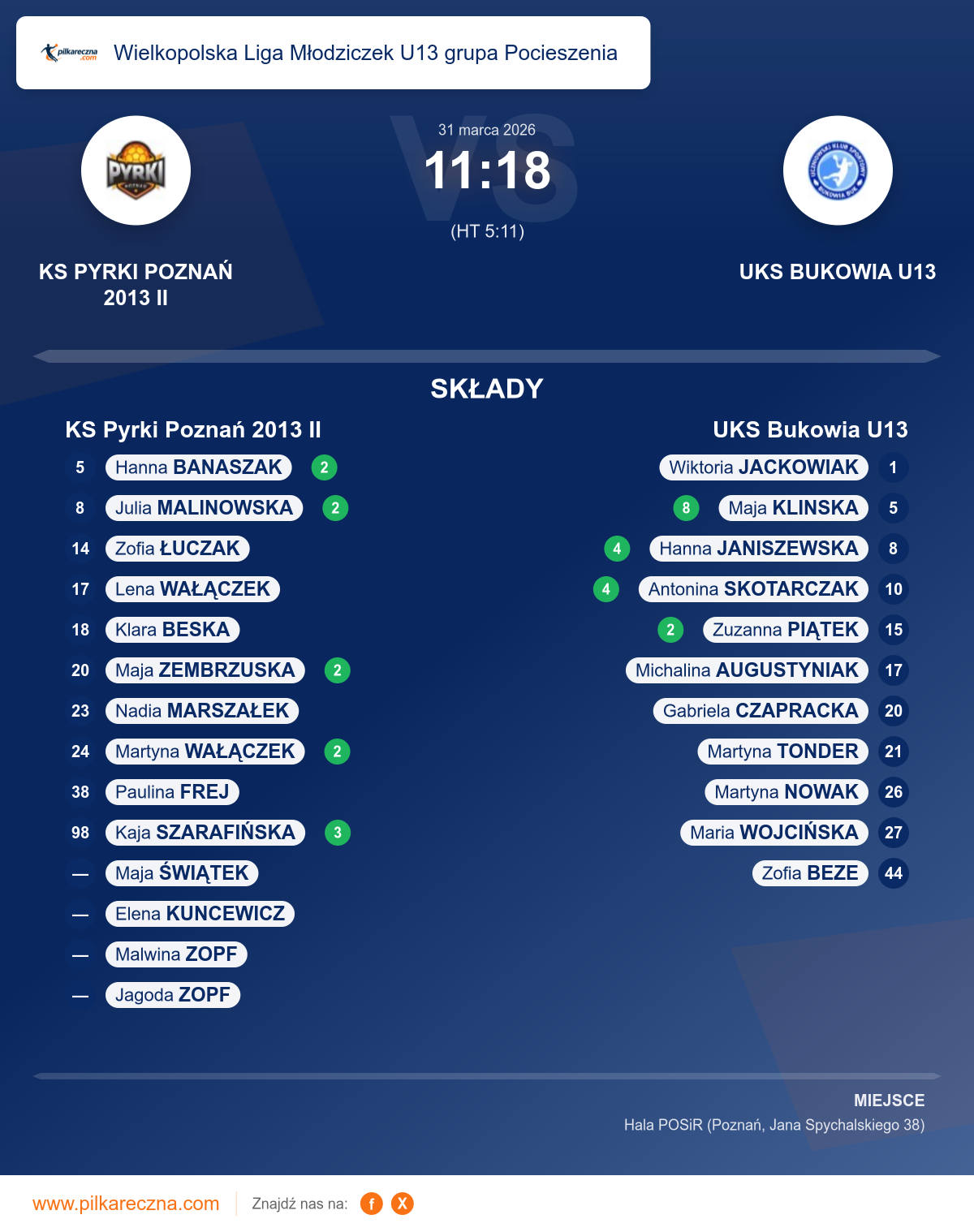 KS Pyrki Poznań 2013 II 11–18 UKS Bukowia U13