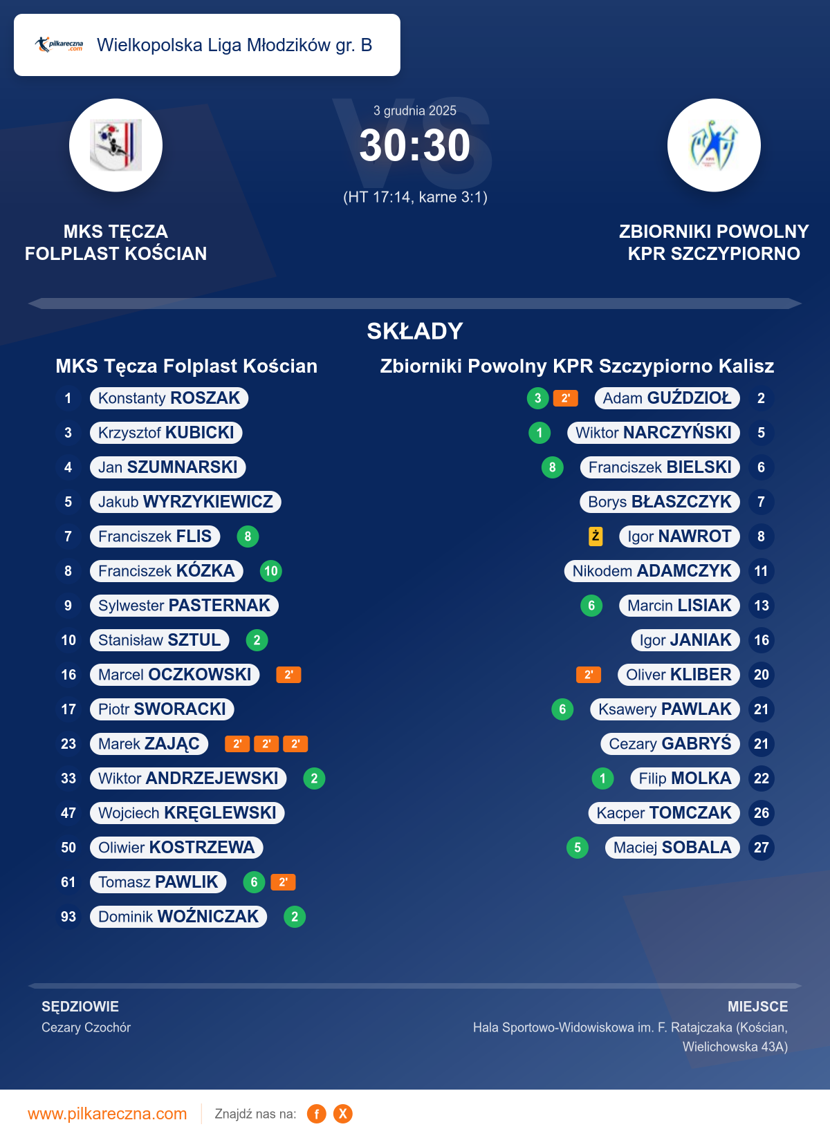 MKS Tęcza Folplast Kościan 30–30 Zbiorniki Powolny KPR Szczypiorno Kalisz