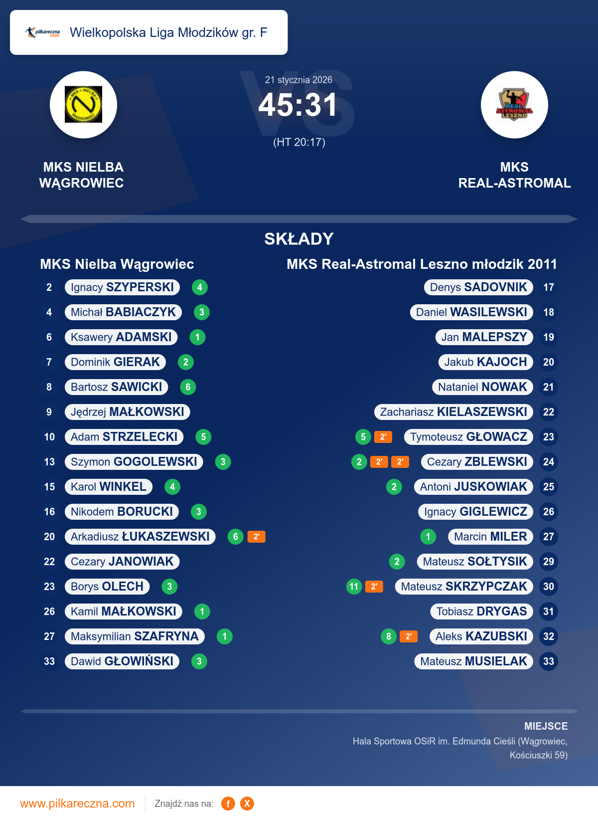 MKS Nielba Wągrowiec 45–31 MKS Real-Astromal Leszno młodzik 2011