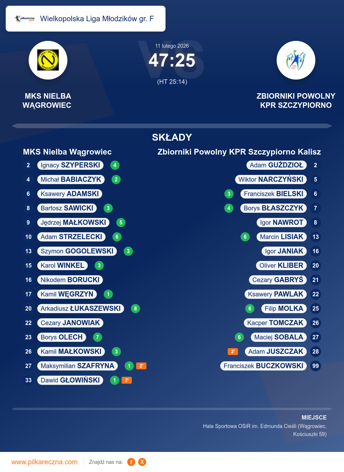 MKS Nielba Wągrowiec 47–25 Zbiorniki Powolny KPR Szczypiorno Kalisz